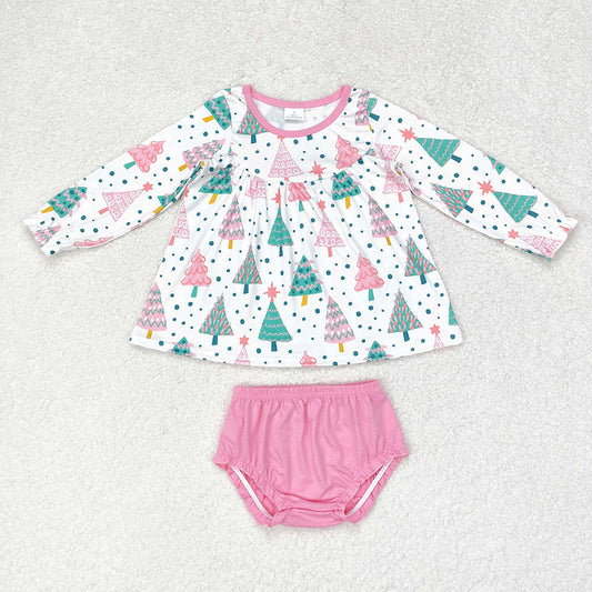 Baby Girl Christmas Trees Tops Pink Bummies Set