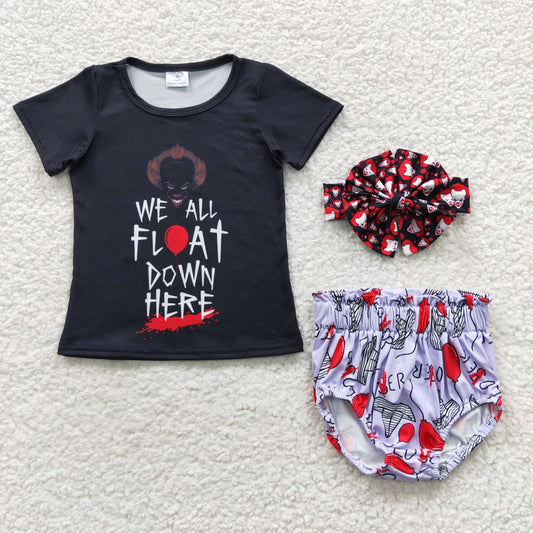 GBO0171 Baby Girl Short Sleeves Shirt Bummie Shorts Halloween Outfit