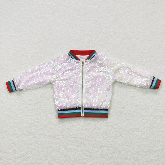 BT0294 Baby Girl Long Sleeves Zipper Pink Sequins Jacket