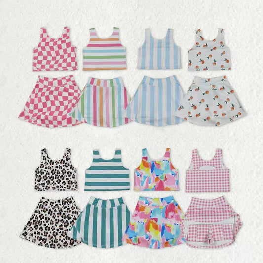 Girls Kids Sleeveless Vest Tops Yoga Athletic Skorts Set Sibling Clothes RTS