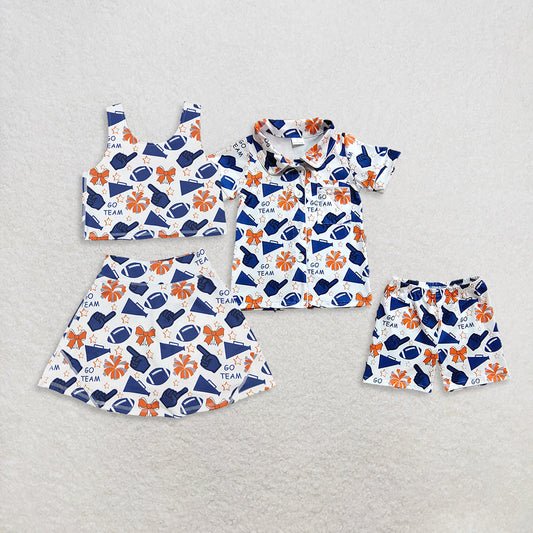 Girls Kids Navy Football Stars Bows Cheer Sibling Team Yoga Active Skort Set Pajamas Outfit RTS