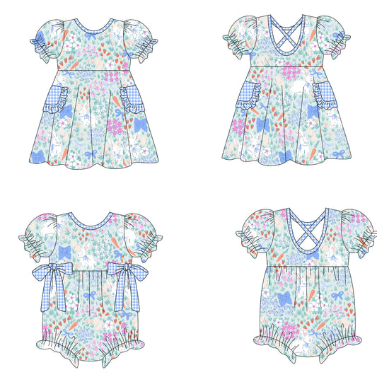 ( Moq 5 Each Style ) Baby Girl Toddler Bows Rabbits Carrots Easter Sibling Romper Dress Set