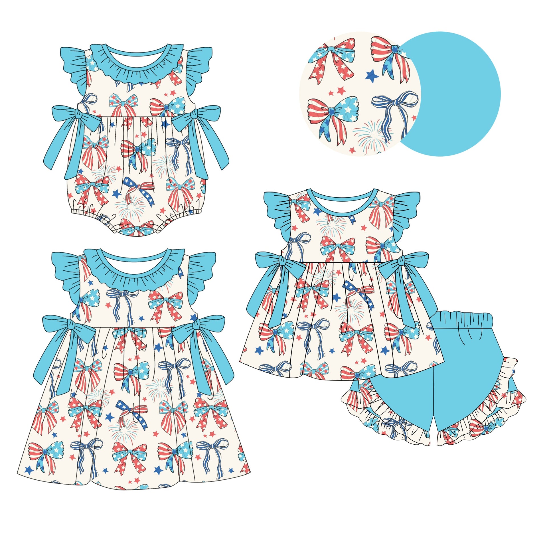 Baby Girl July 4th Bows Sibling Romper Dress Set ( Moq 5 Each Style ) 1.10