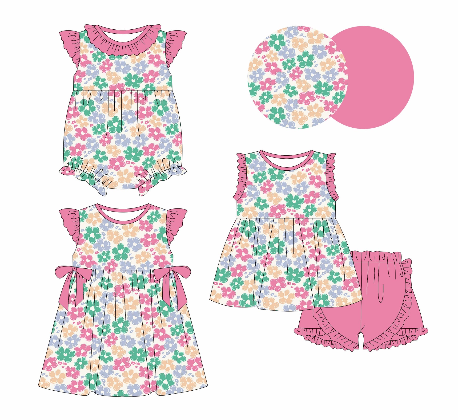 Baby Girl Flower Sibling Romper Dress Set ( Moq 5 Each Style ) 1.10