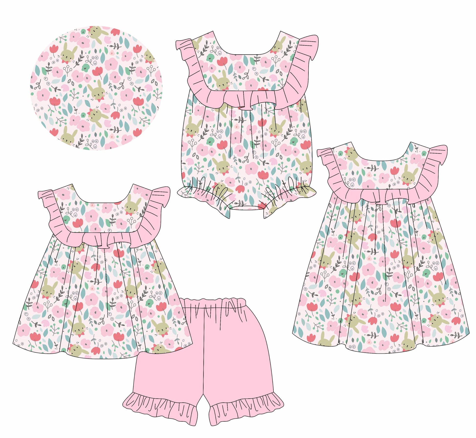 Baby Girl Kids Easter Rabbits Flower Sibling Romper Dress Set ( Moq 5 Each Style ) 1.11