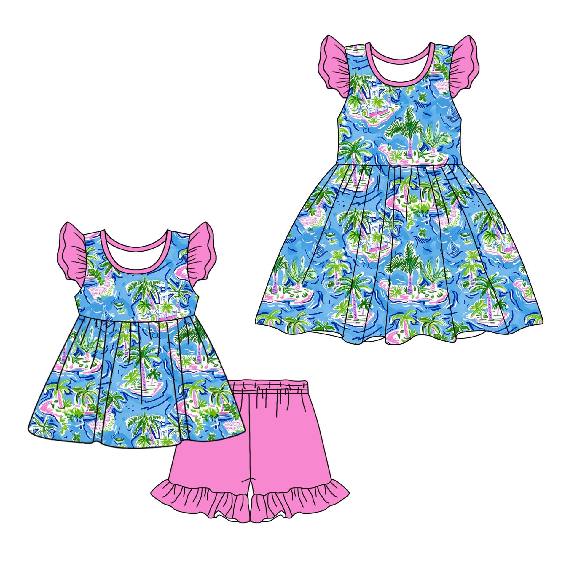 Baby Girl Short Sleeves Tree Beach Sibling Dress Set ( Moq 5 Each Style ) 1.13