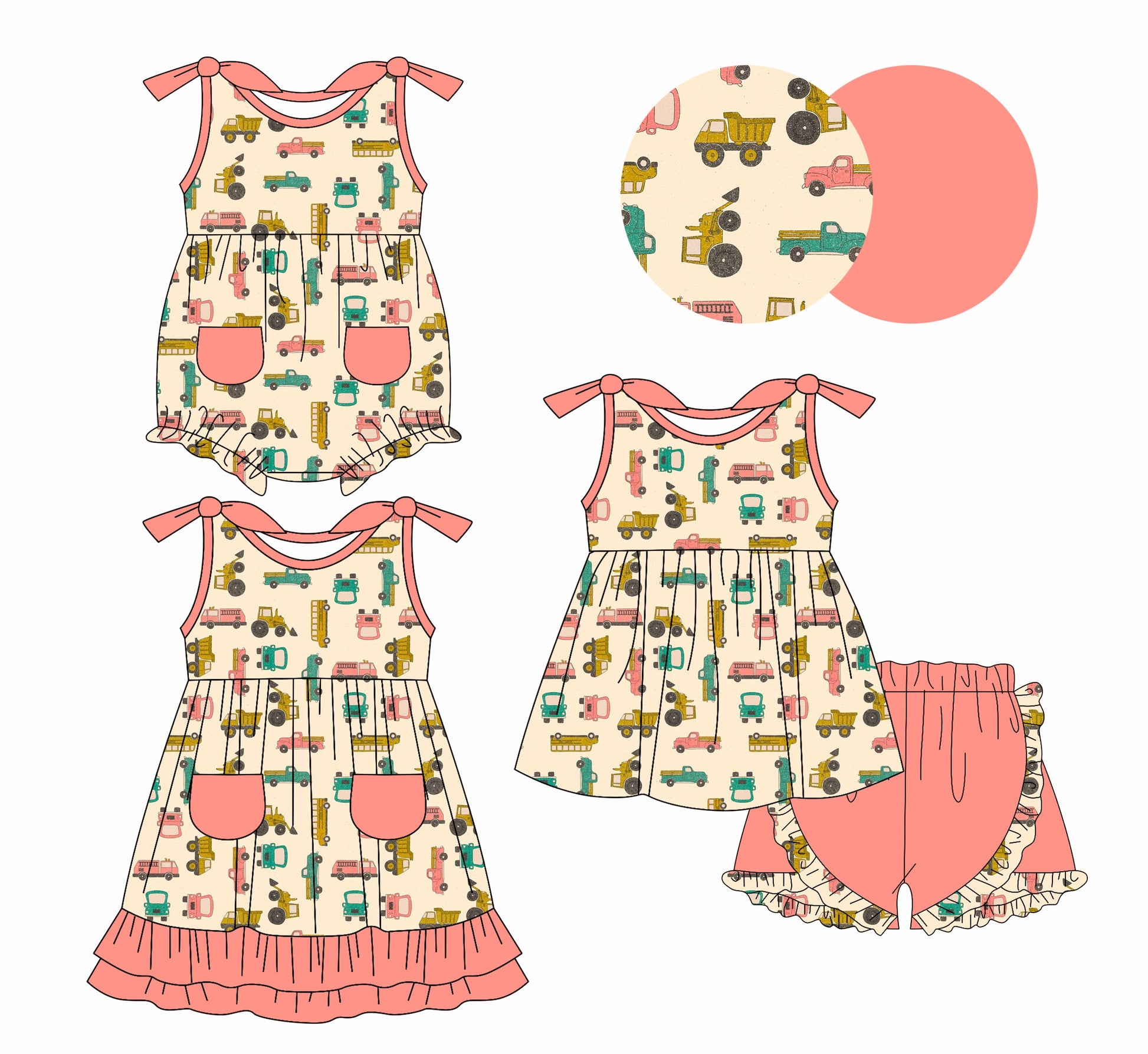 Baby Girl Trucks Straps Sibling Romper Dress Set ( Moq 5 Each Style ) 1.13