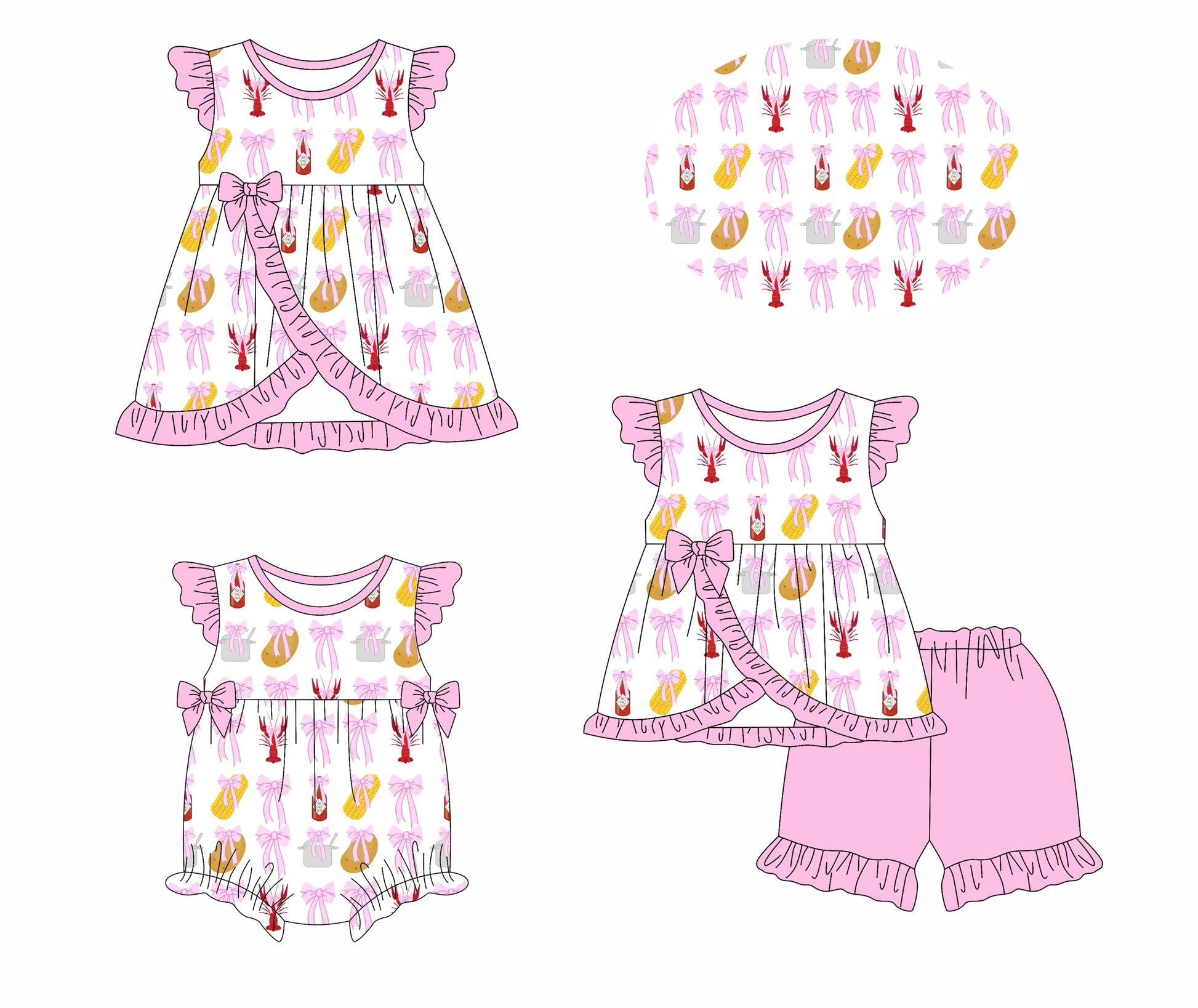 Baby Girl Crawfish Bows Sibling Romper Dress Set ( Moq 5 Each Style ) 1.13