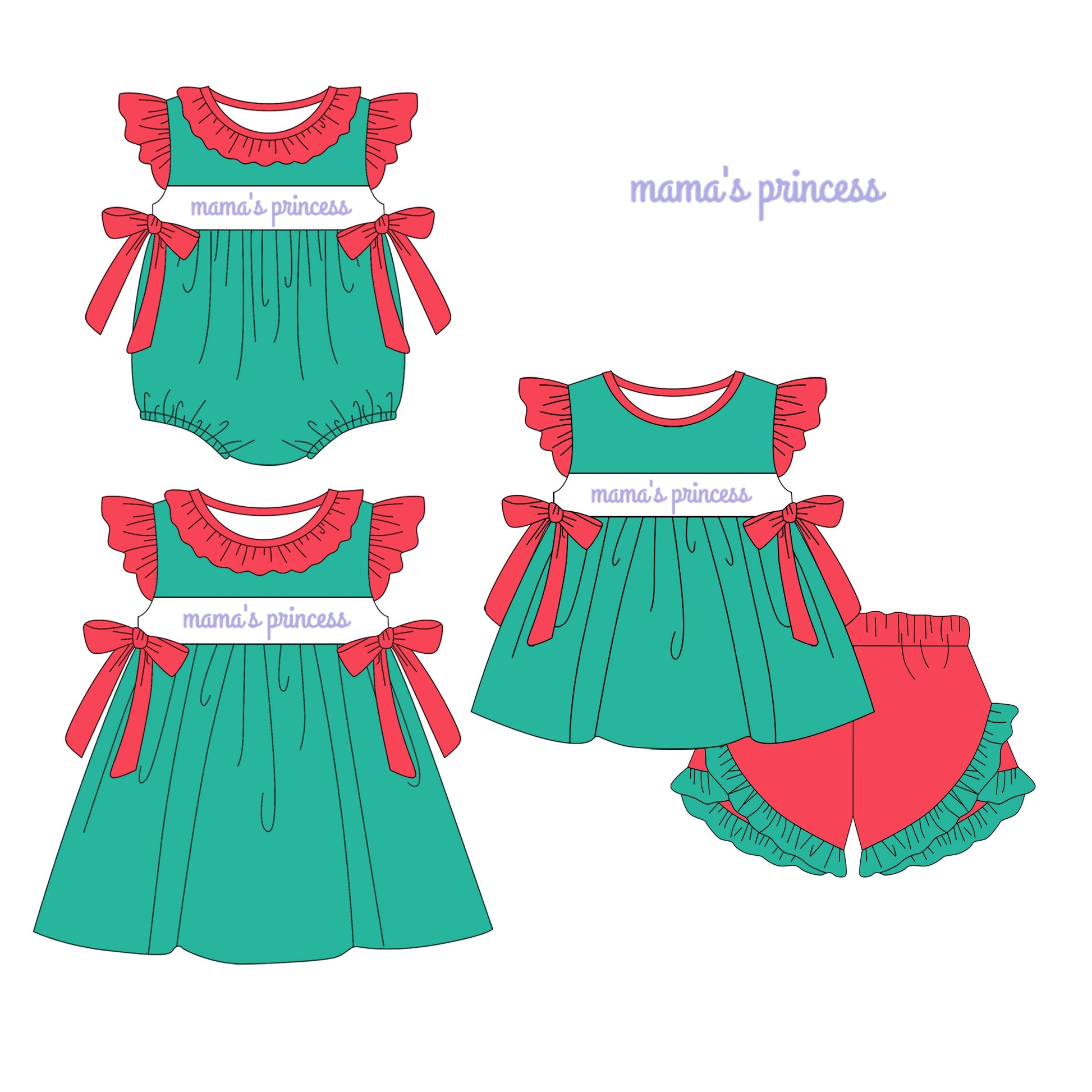 Baby Girl Mama's Princess Green Sibling Romper Dress Set ( Moq 5 Each Style ) 1.14