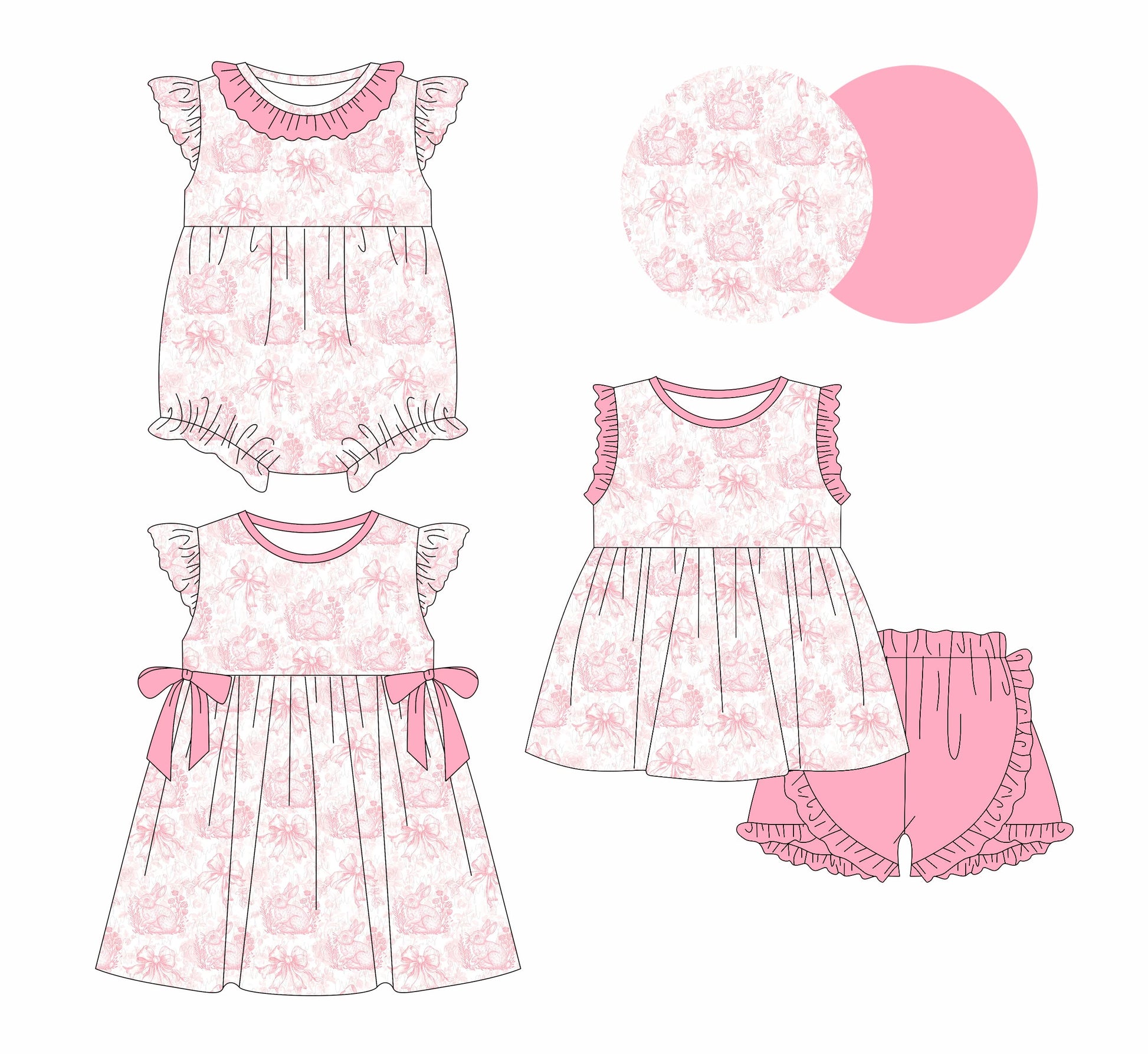 Baby Girl Easter Rabbits Bows Sibling Romper Dress Set ( Moq 5 Each Style ) 1.2
