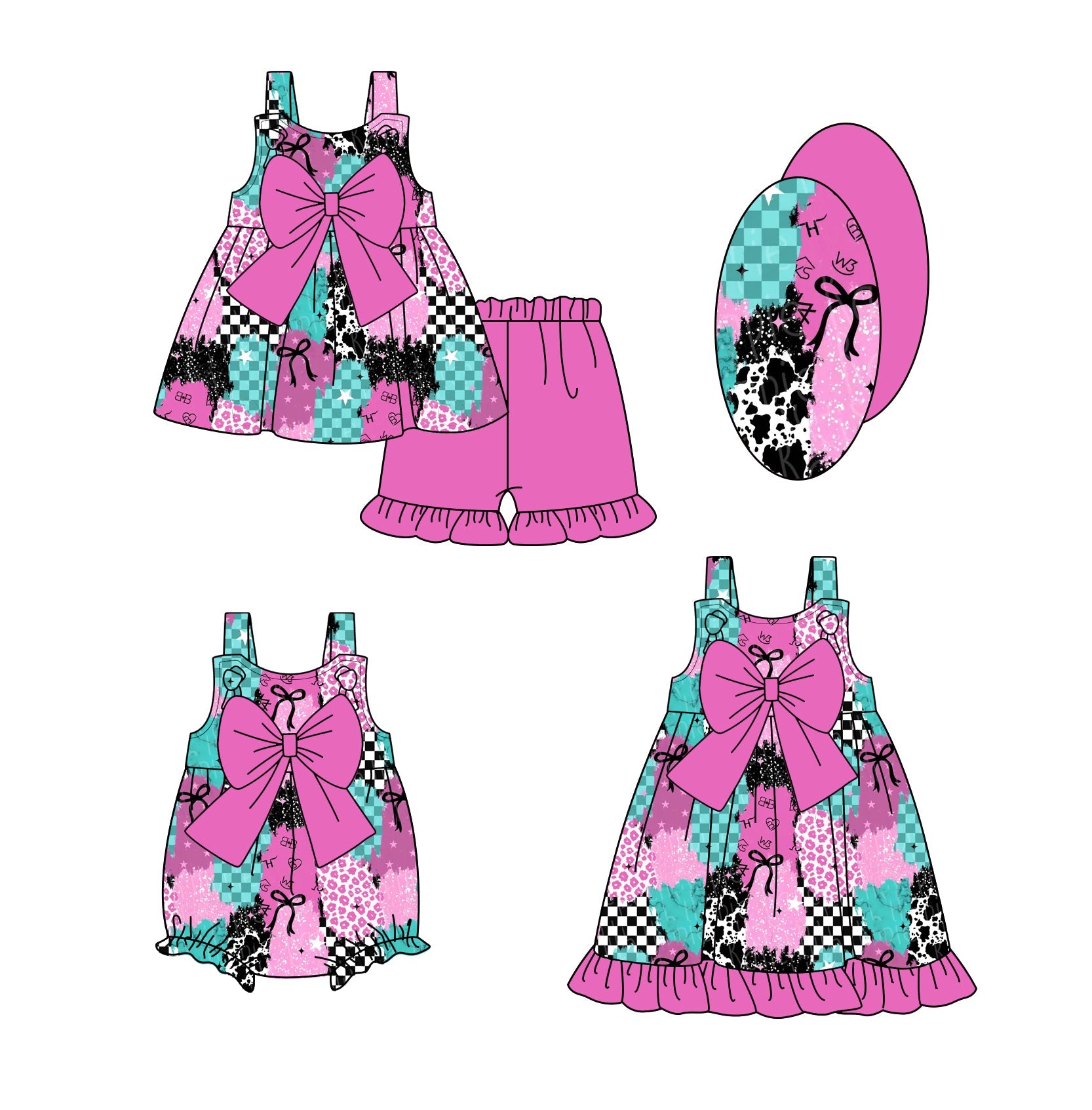 Baby Girl Bows Checked Leopard Sibling Romper Dress Set ( Moq 5 Each Style ) 1.20