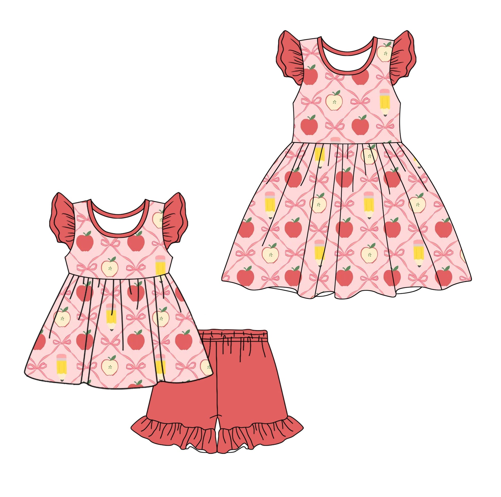 Baby Girl Back To School Pencil Apple Bows Sibling Dress Set ( Moq 5 Each Style ) 1.23