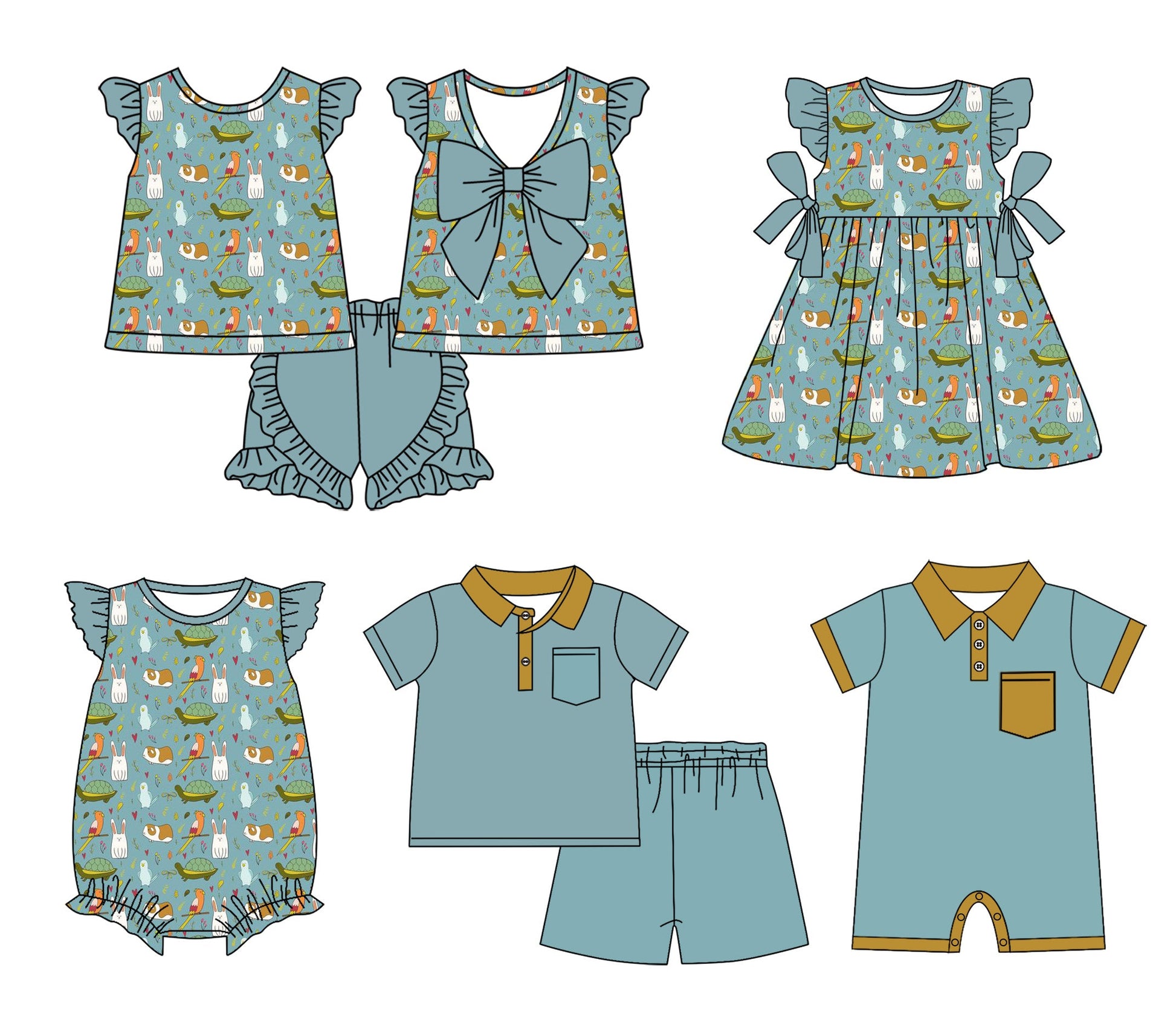 Baby Boy Girl Animals Sibling Romper Dress Set ( Moq 5 Each Style ) 1.23
