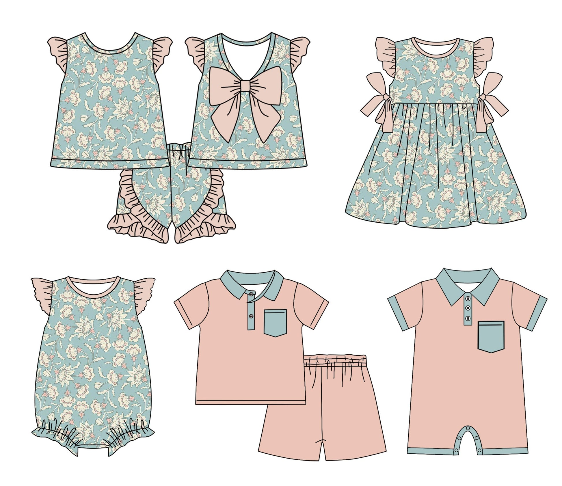 Baby Boy Girl Flower Sibling Romper Dress Set ( Moq 5 Each Style ) 1.23