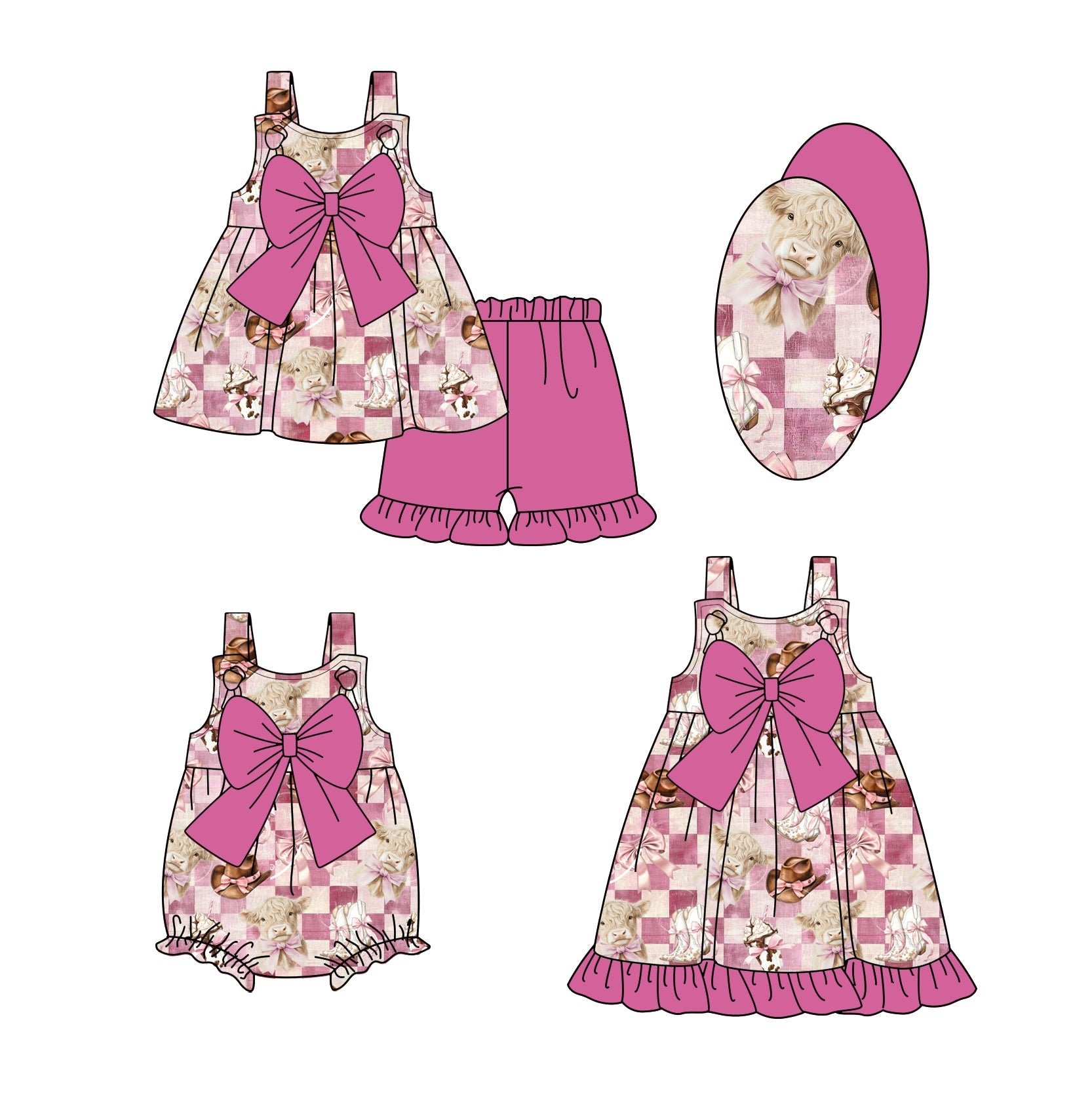 Baby Girl Cow Bows Checked Sibling Romper Dress Set ( Moq 5 Each Style ) 1.23