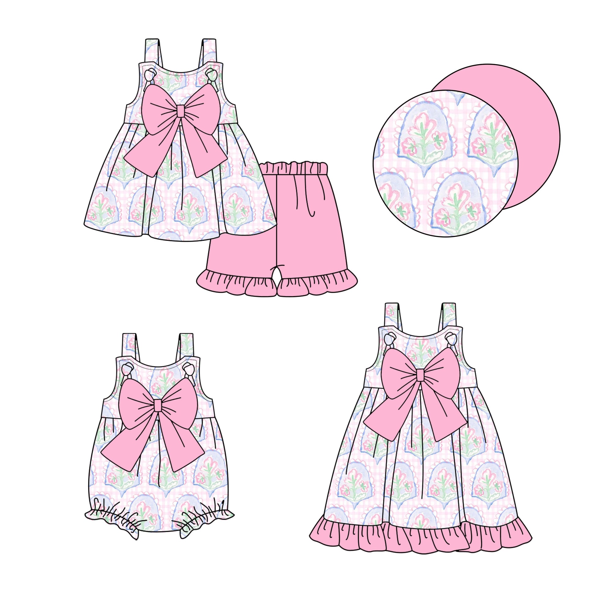 Baby Girl Flower Pink Bows Sibling Romper Dress Set ( Moq 5 Each Style ) 1.23
