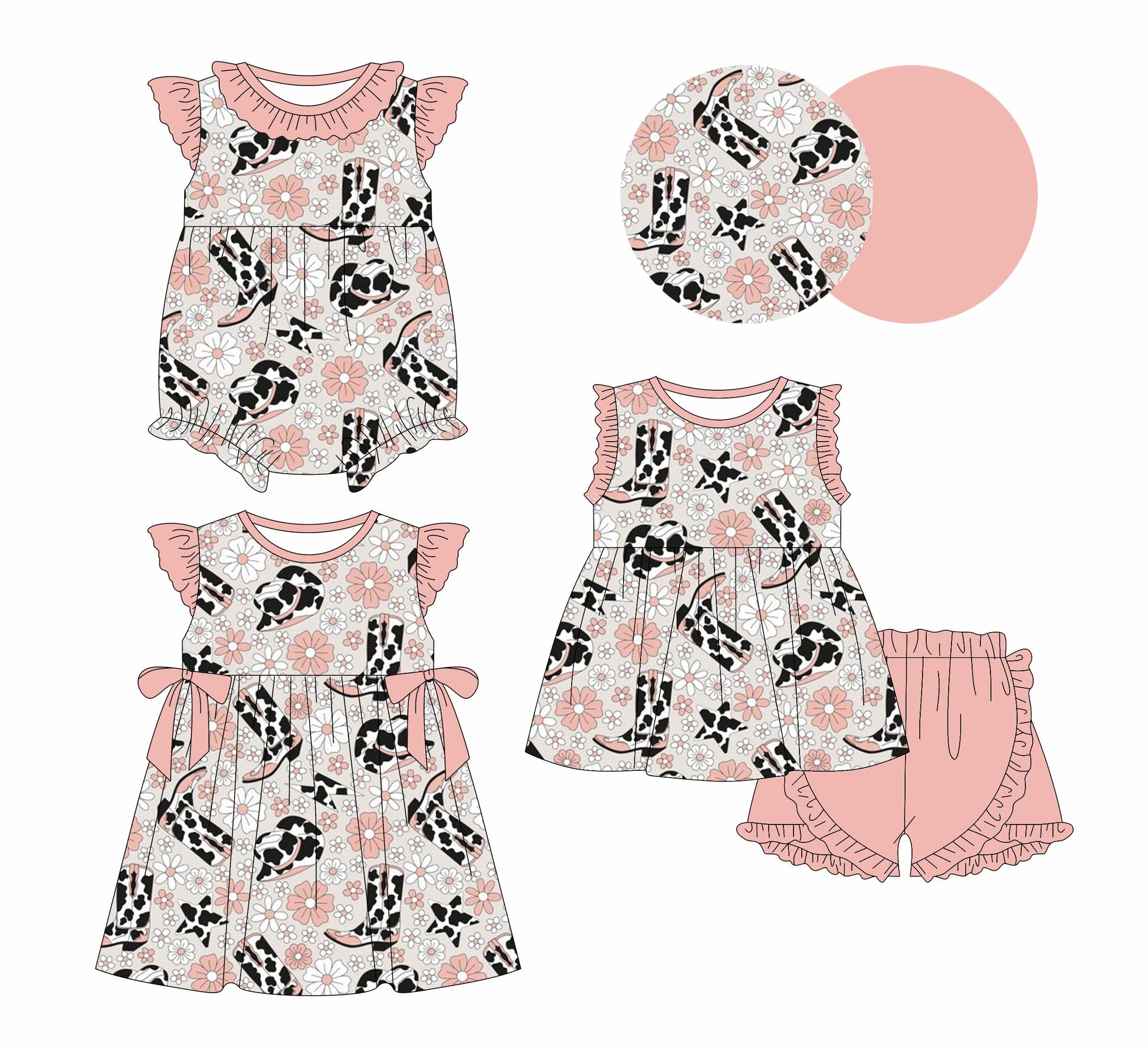 Baby Girl Boots Hats Flower Sibling Romper Dress Set ( Moq 5 Each Style ) 1.23