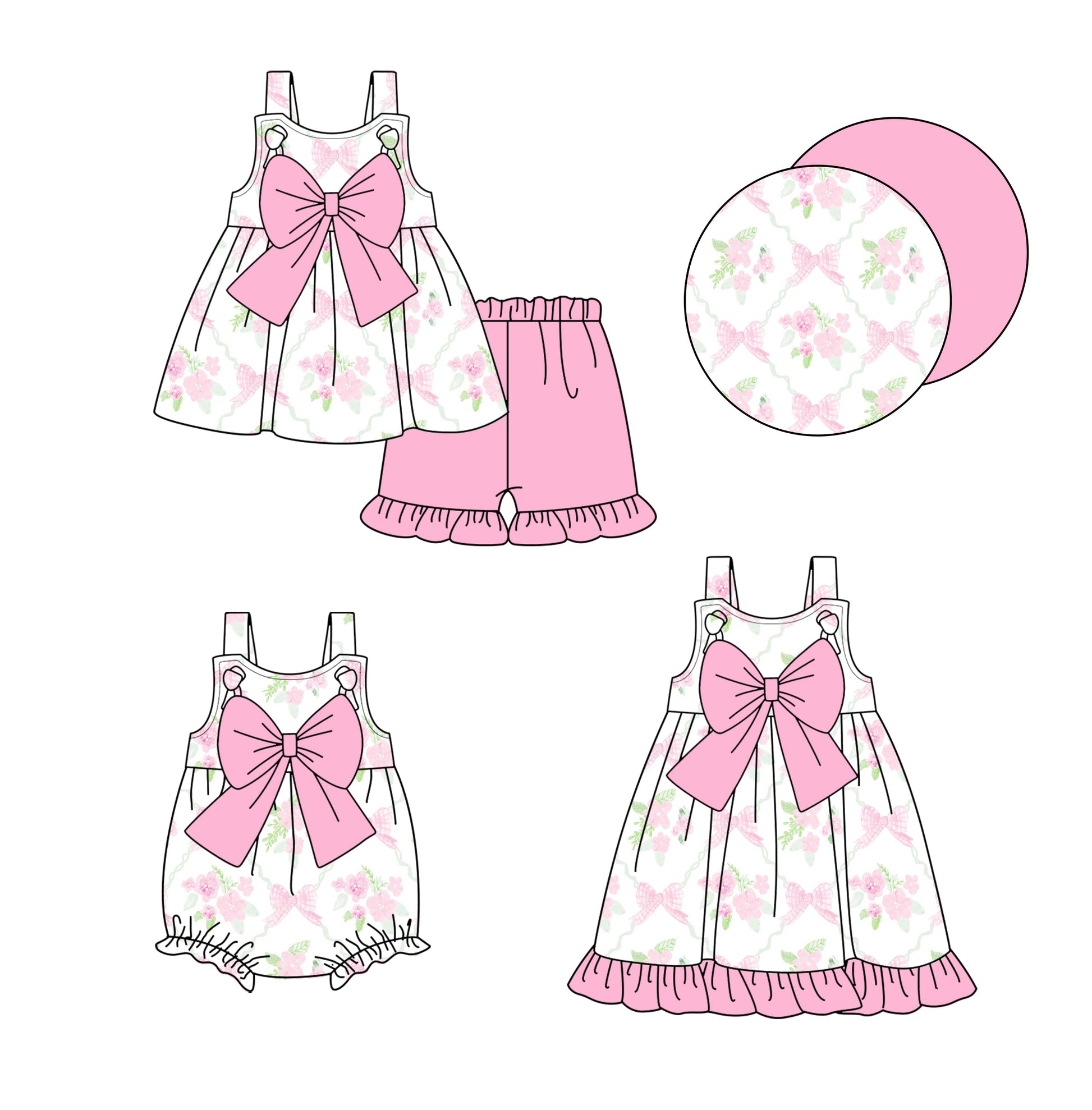 Baby Girl Flower Pink Bows Straps Sibling Romper Dress Set ( Moq 5 Each Style ) 1.23