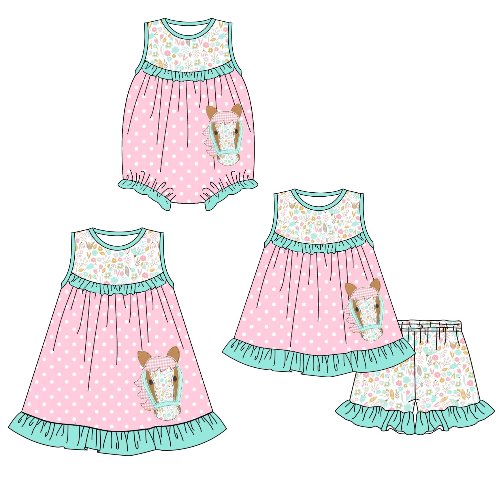 Baby Girl Horse Flower Sibling Romper Dress Set ( Moq 5 Each Style ) 1.23