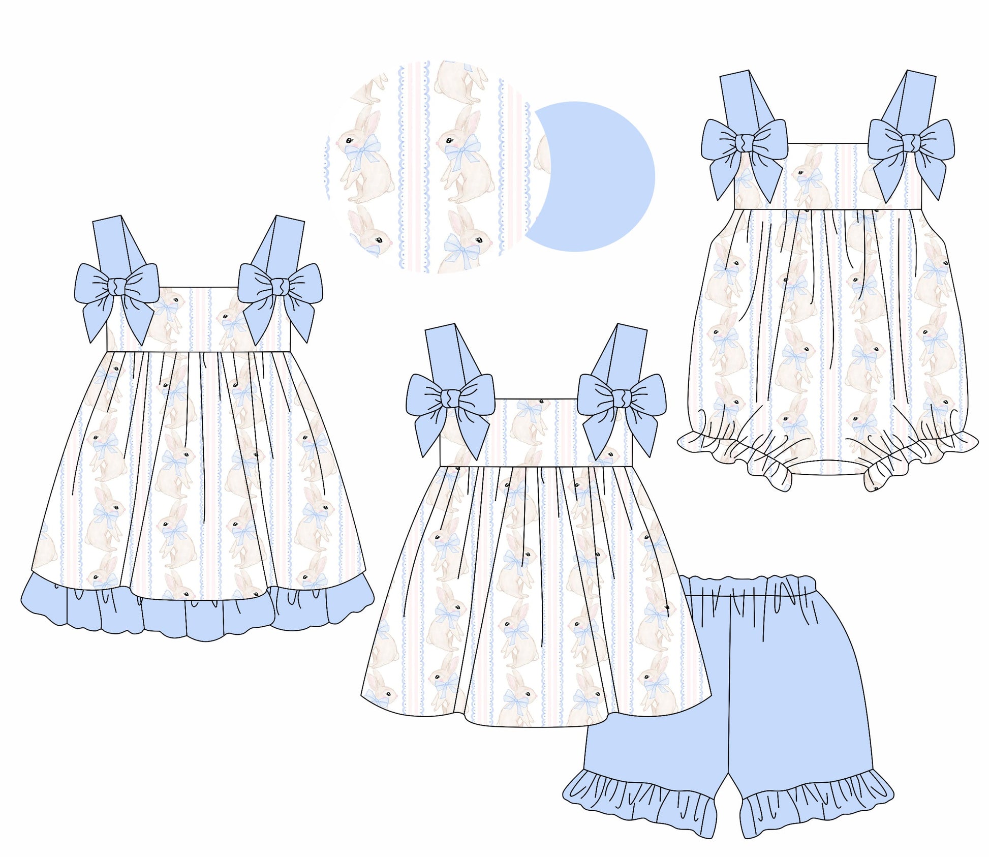 Baby Girl Easter Rabbits Bows Sibling Romper Dress Set ( Moq 5 Each Style ) 1.23