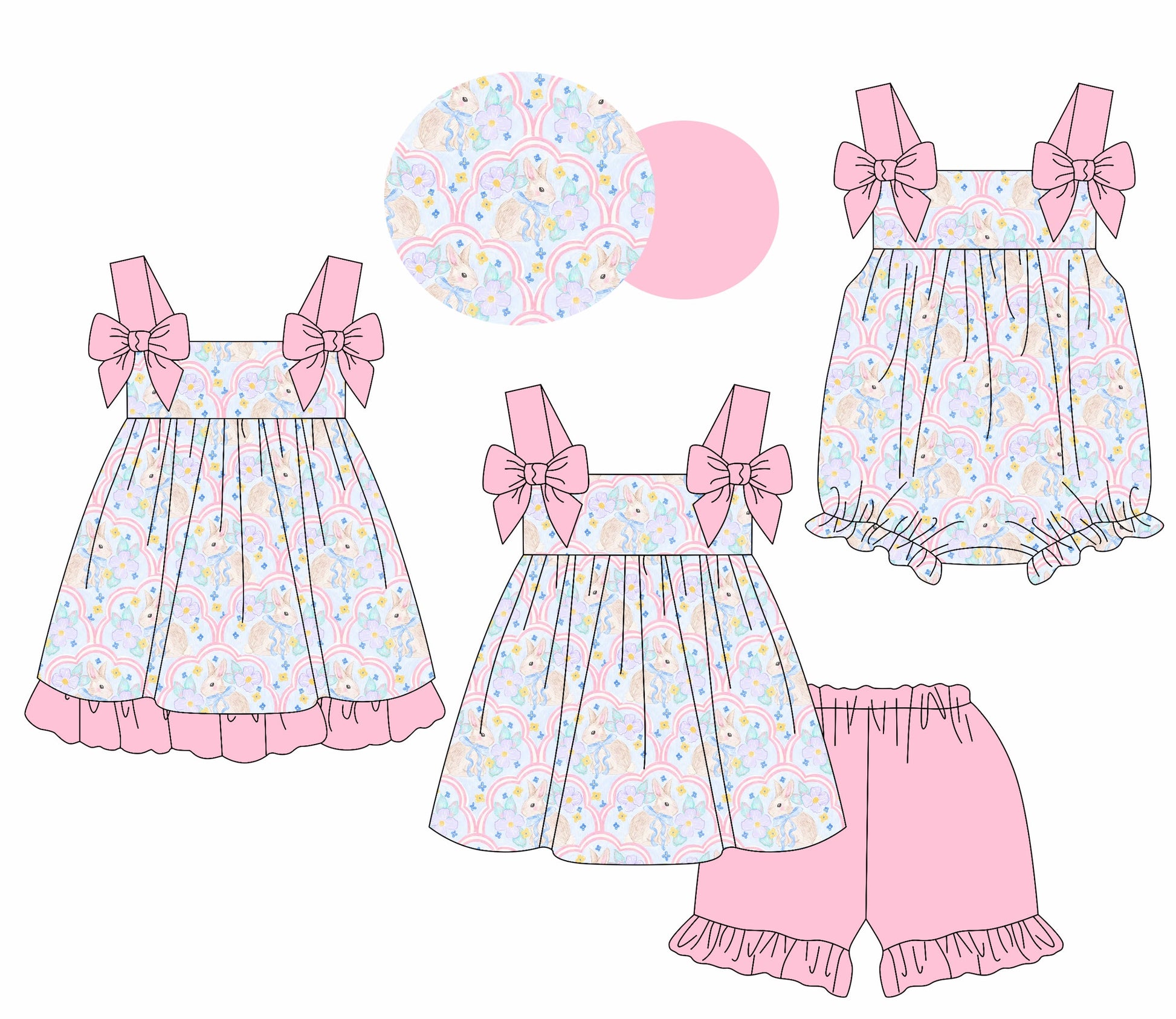 Baby Girl Easter Rabbits Flower Sibling Romper Dress Set ( Moq 5 Each Style ) 1.23