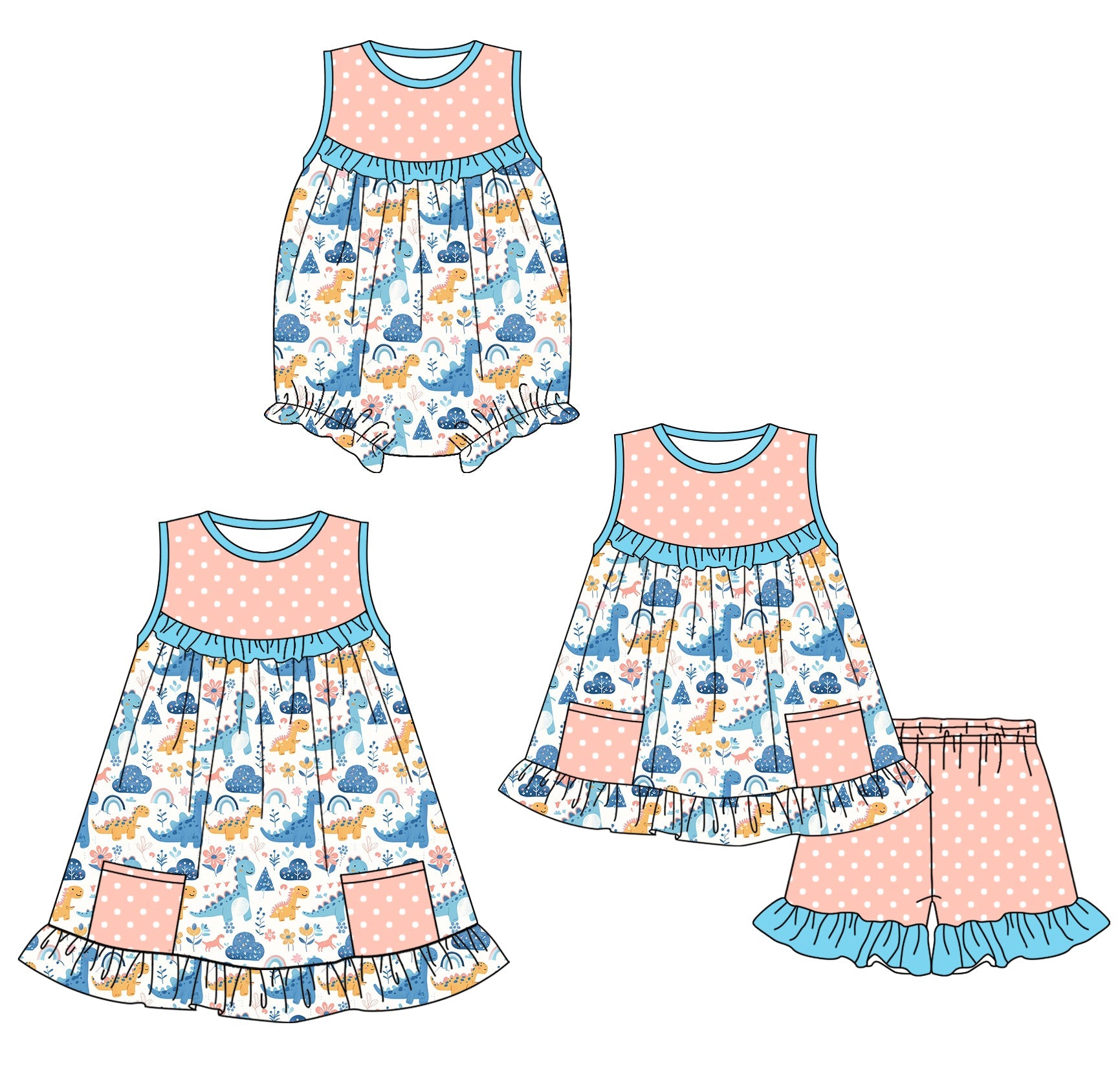 Baby Girl Sleeveless Dinosaurs Sibling Romper Dress Set ( Moq 5 Each Style ) 1.24