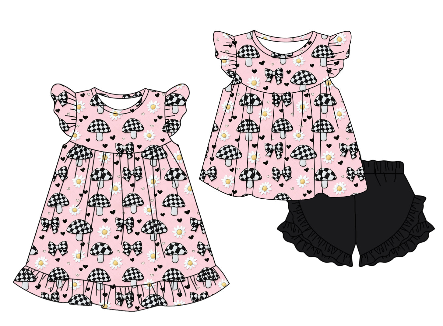 Baby Girl Short Sleeves Flower Bows Sibling Dress Set ( Moq 5 Each Style ) 1.8