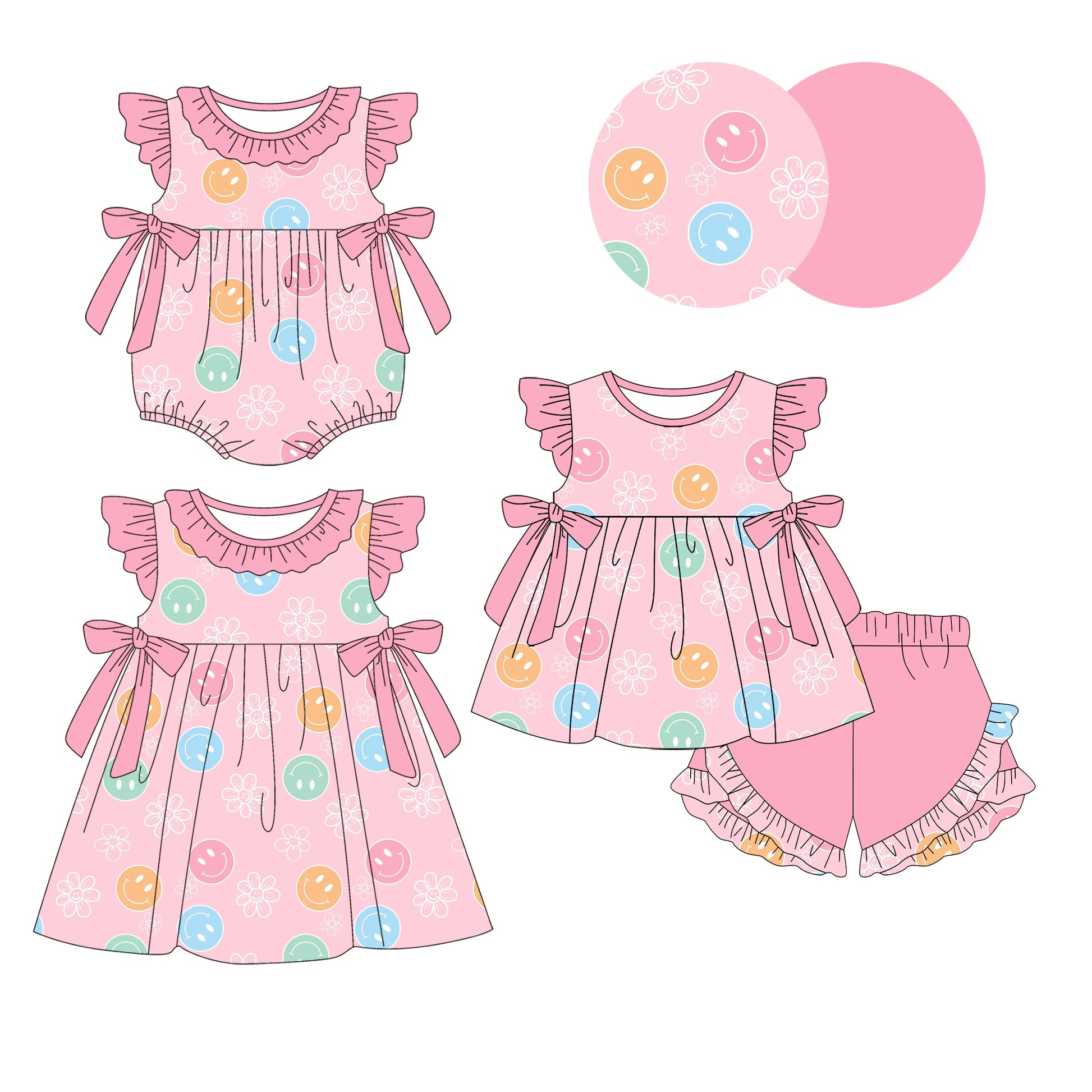 Baby Girl Smile Flower Pink Sibling Romper Dress Set ( Moq 5 Each Style ) 1.9
