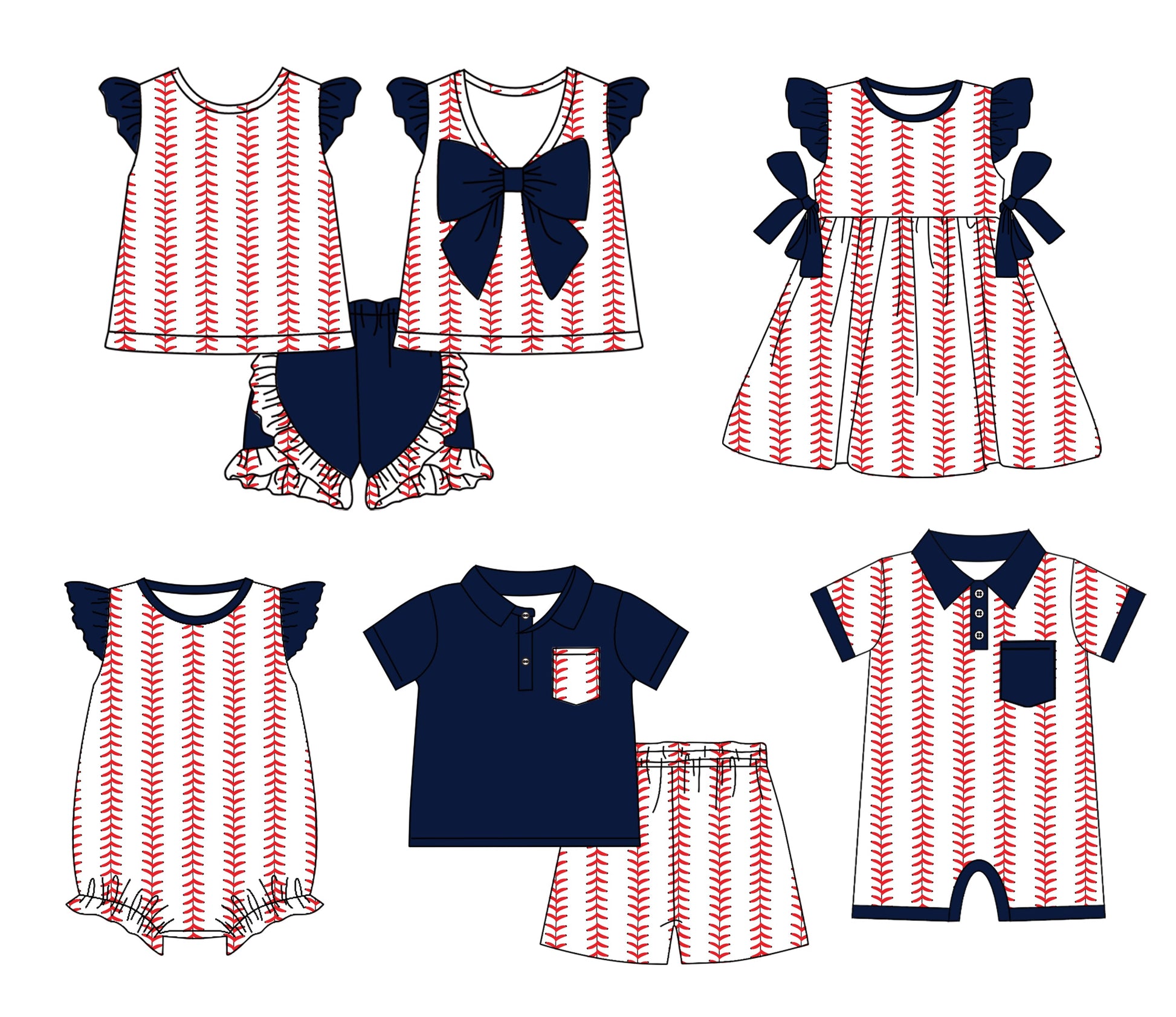 Baby Boy Girl Short Sleeves Baseball Stripes Sibling Romper Dress Set ( Moq 5 Each Design ) 12.11