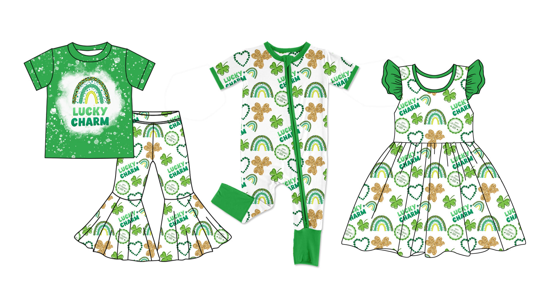Baby Girl Short Sleeves St Patrick Rainbow Sibling Romper Dress Set ( Moq 5 Each Design ) 12.11