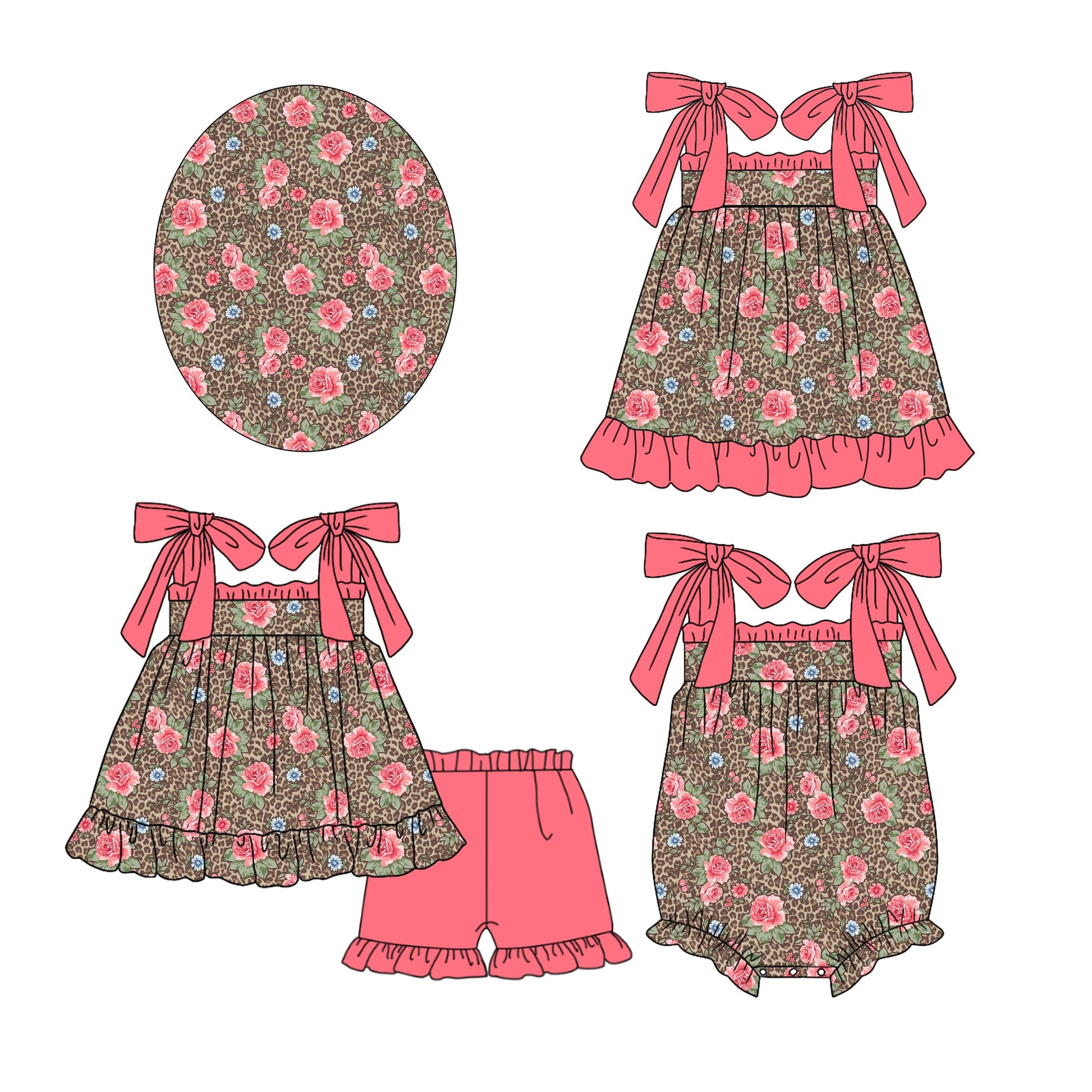 Baby Girl Straps Flower Leopard Sibling Romper Dress Set ( Moq 5 Each Design ) 12.12
