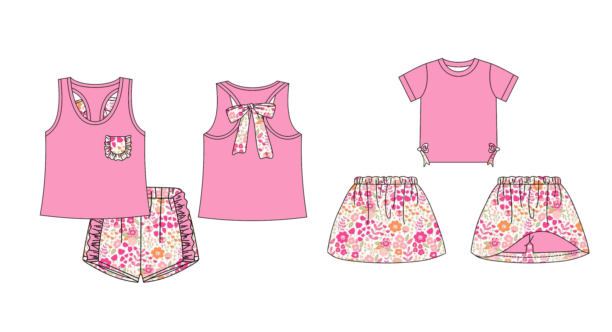 Baby Girl Pink Sleeveless Bows Flower Sibling Set ( Moq 5 Each Design ) 12.13