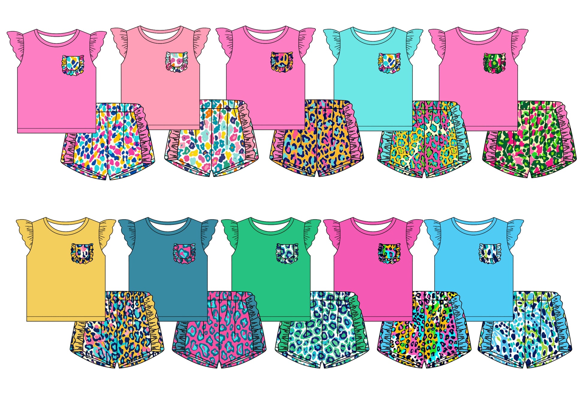 Baby Girl Short Sleeves Pockets Leopard Sibling Set ( Moq 5 Each Design ) 12.14