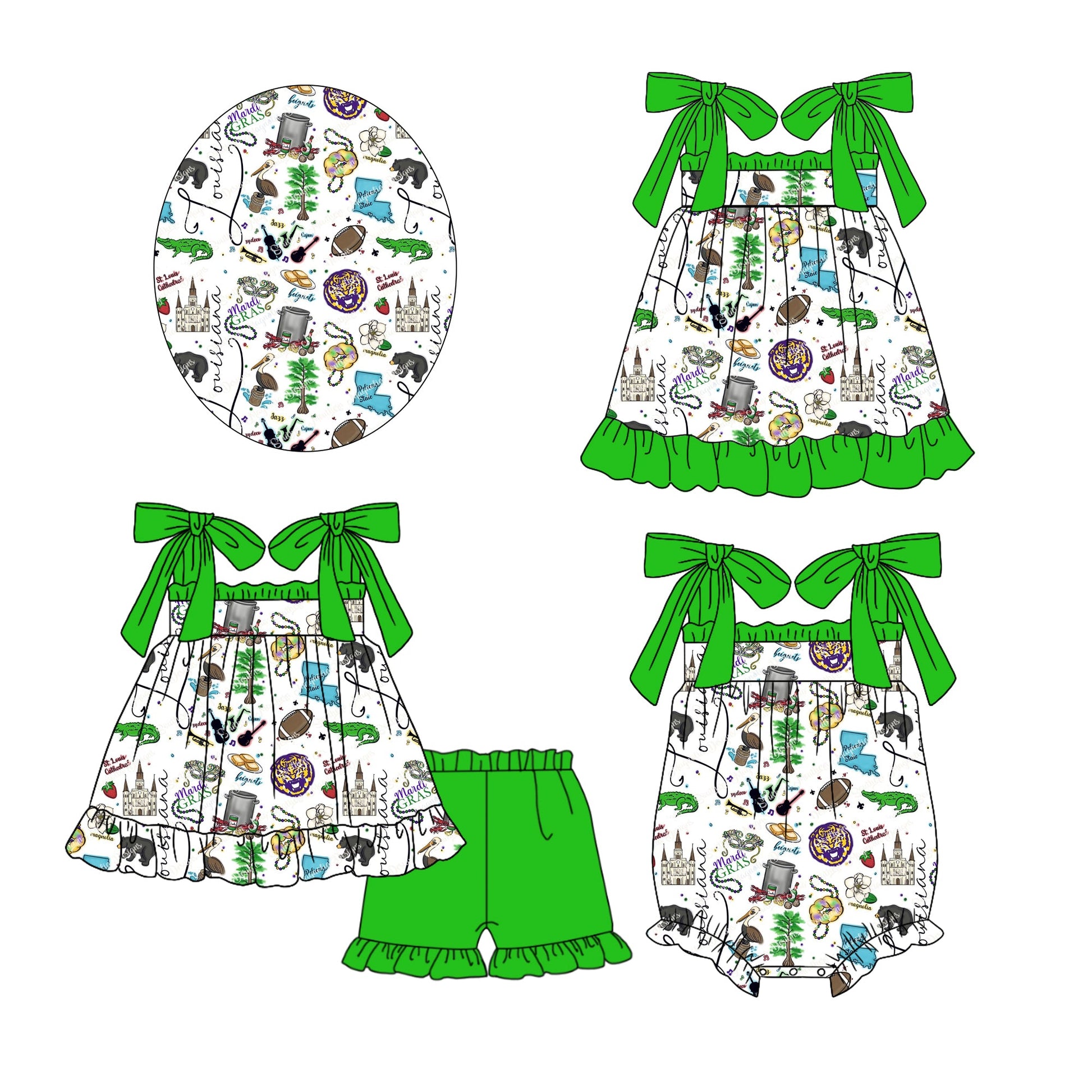 Baby Girl Green Straps Football Sibling Romper Dress Set ( Moq 5 Each Design ) 12.14