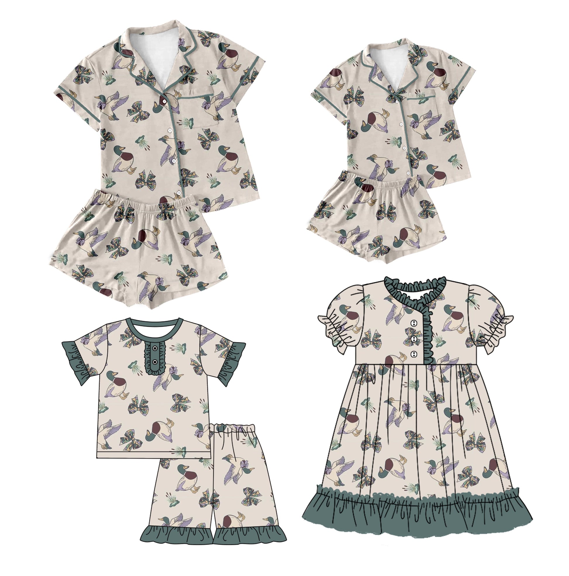 Baby Girl Adult Women Short Sleeves Ducks Camo Bows Sibling Dress Set ( Moq 5 Each Design ) 12.16
