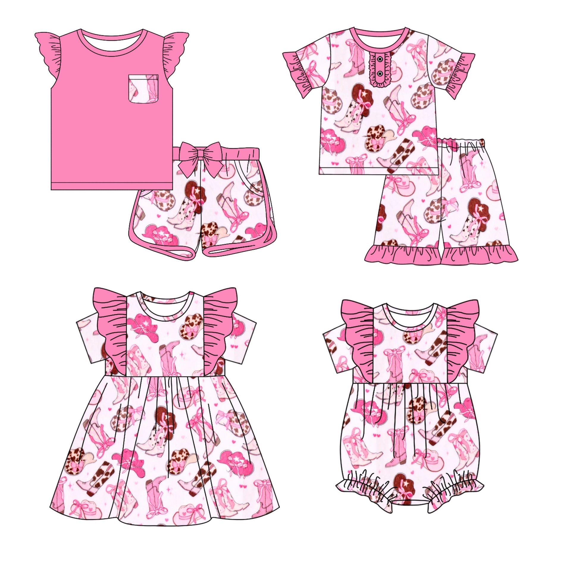 Baby Girl Short Sleeves Western Pink Boots Sibling Romper Dress Set ( Moq 5 Each Style ) 12.18