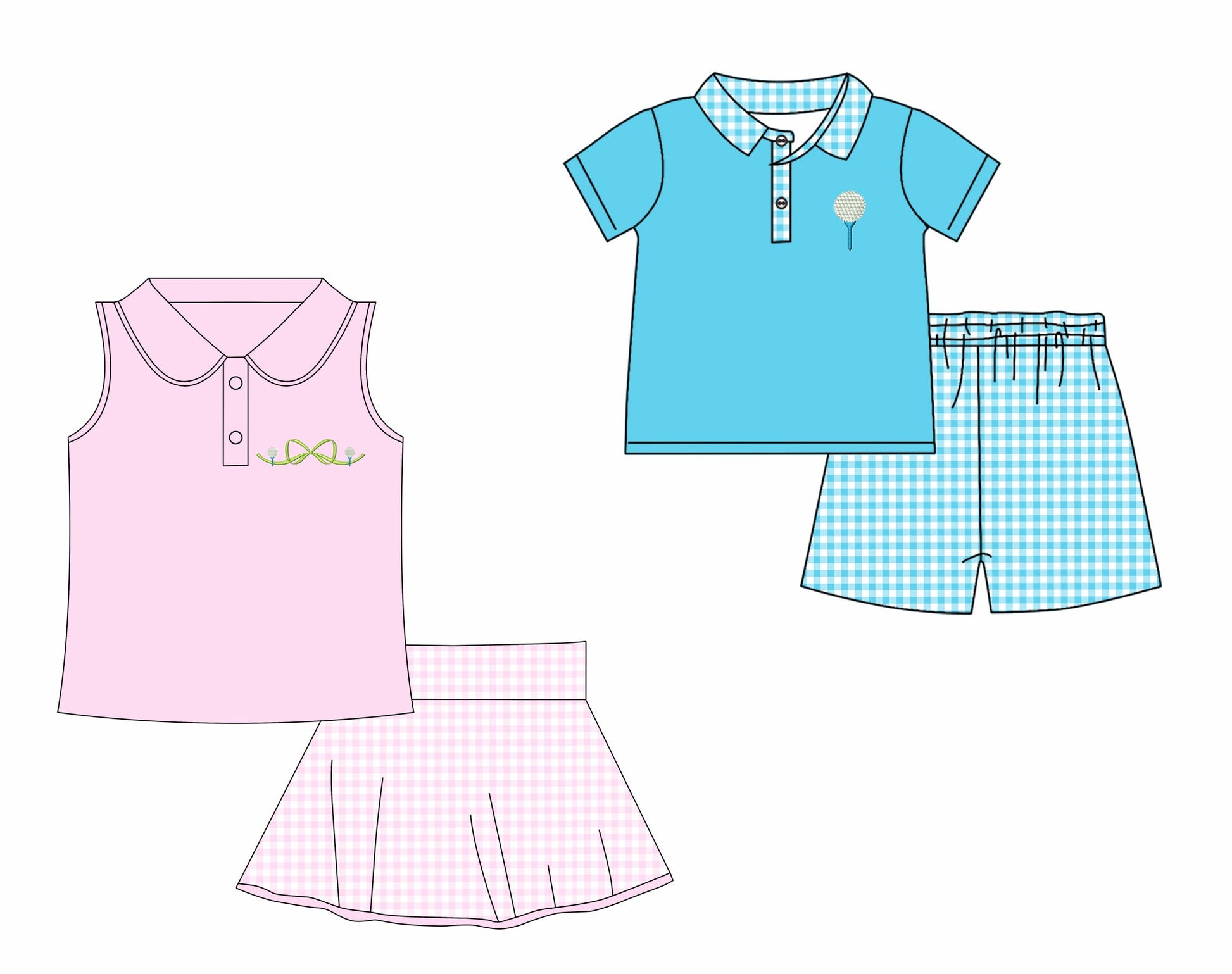 Baby Boy Girl Short Sleeves Golf Bow Sibling Set ( Moq 5 Each Style ) 12.19