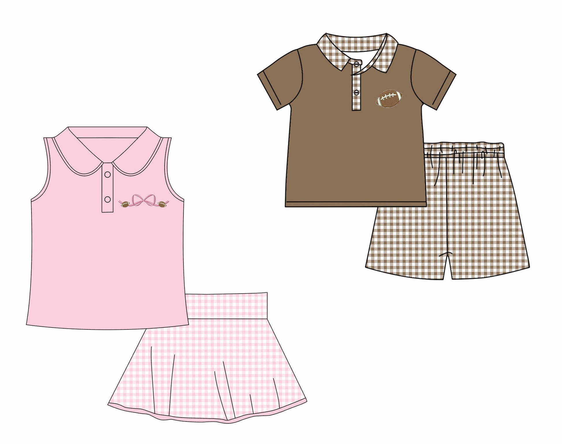 Baby Boy Girl Short Sleeves Football Bow Sibling Set ( Moq 5 Each Style ) 12.19