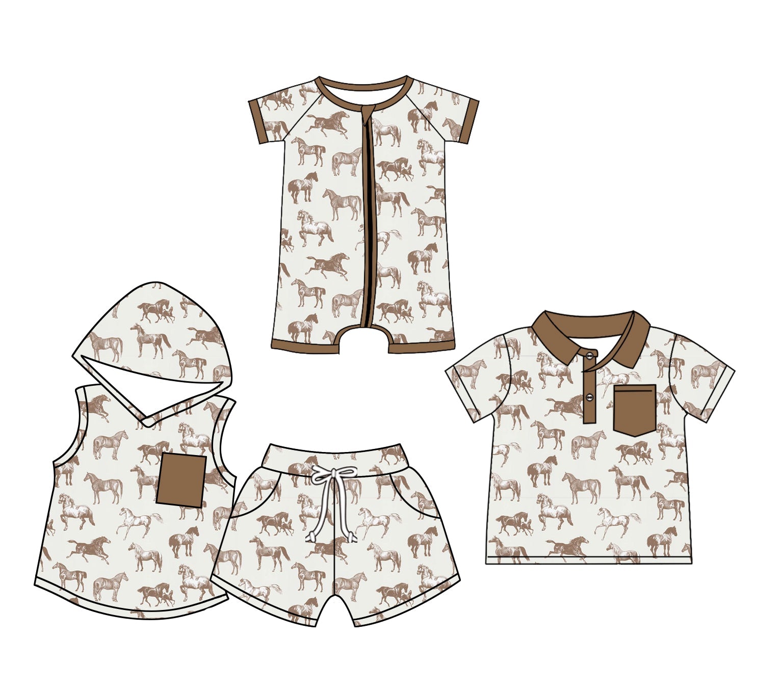Baby Boy Short Sleeves Western Horse Sibling Romper Set ( Moq 5 Each Style ) 12.20