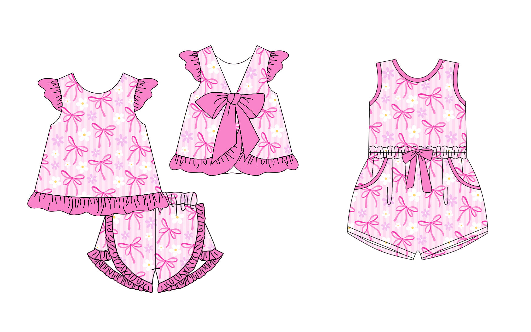Baby Girl Summer Bows Flower Sibling Jumpsuit Set ( Moq 5 Each Style ) 12.24