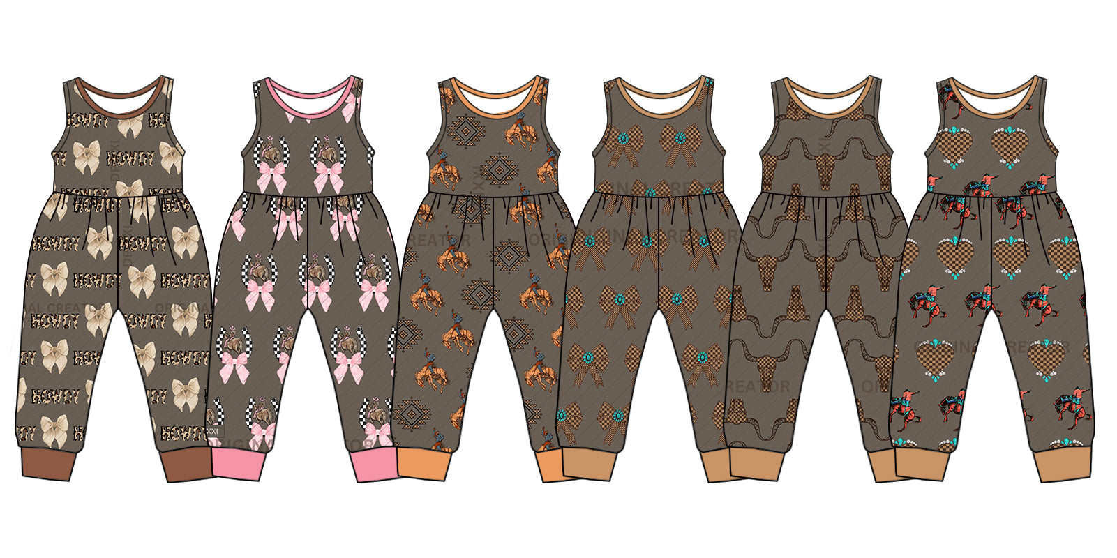 Baby Girl Sleeveless Western Bows Sibling Jumpsuit ( Moq 5 Each Style ) 12.24