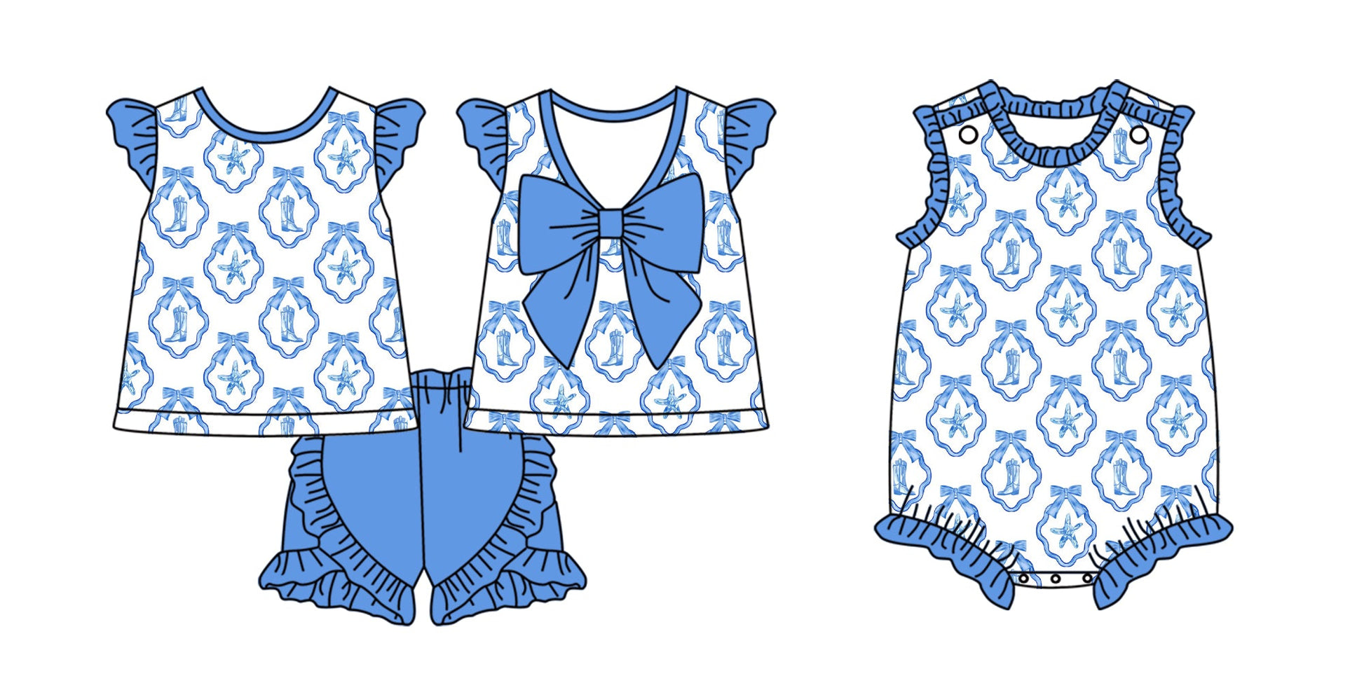 Baby Girl Boots Blue Bows Sibling Romper Set ( Moq 5 Each Style ) 2.10