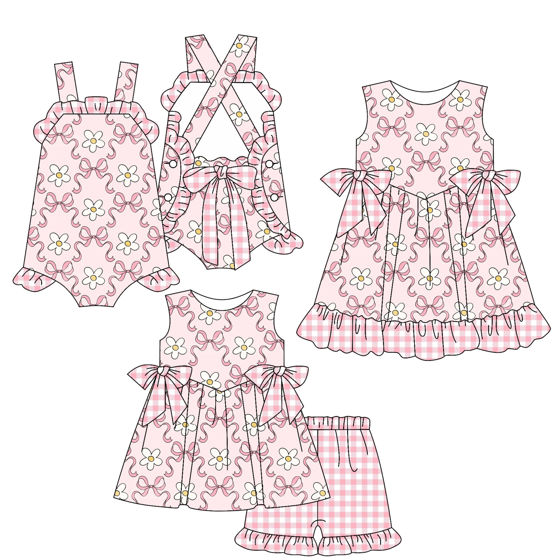 Baby Girl Flower Pink Bows Sibling Romper Dress Set ( Moq 5 Each Style ) 2.14
