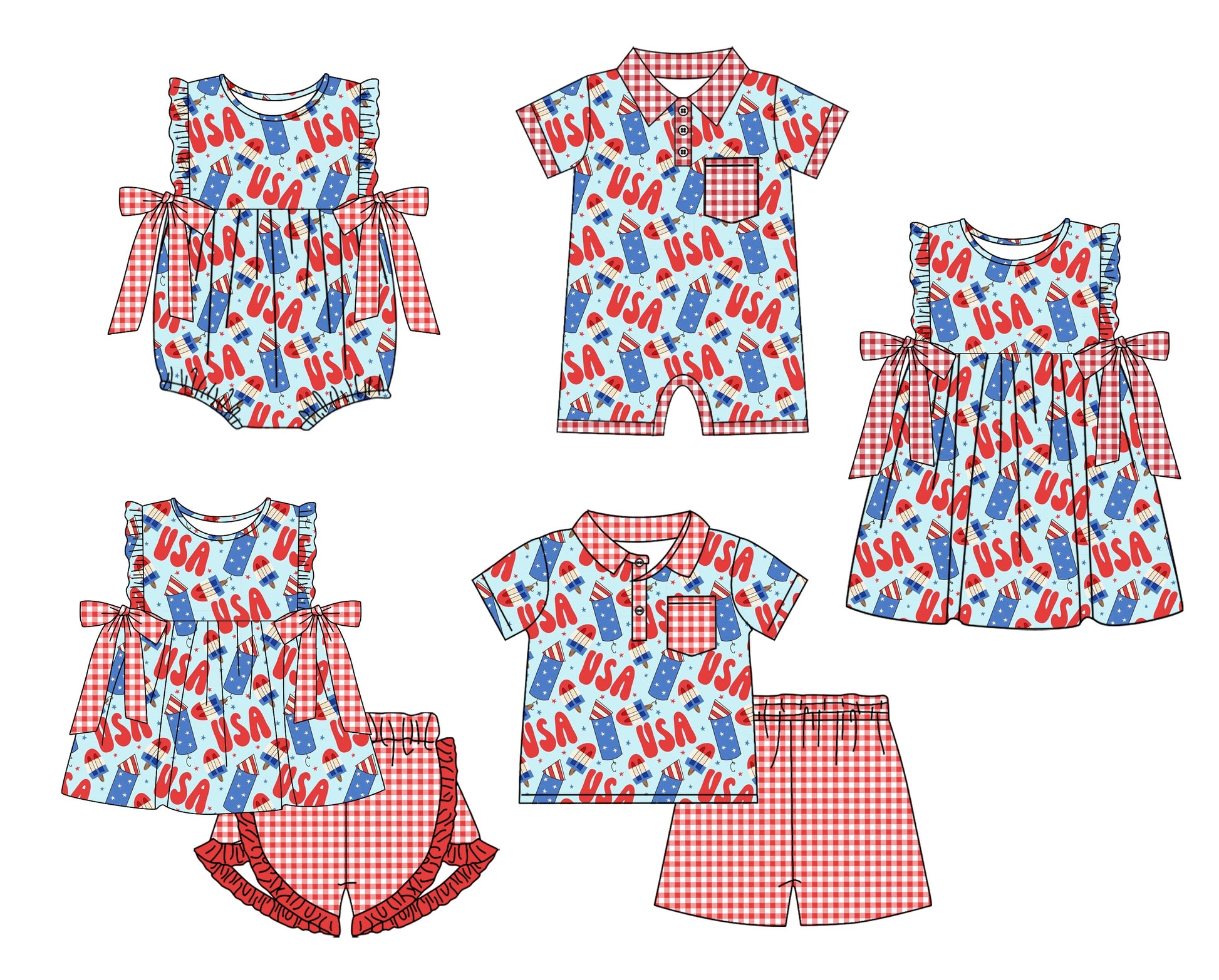 Baby Boy Girl July 4th Sibling Romper Dress Set ( Moq 5 Each Style ) 2.15