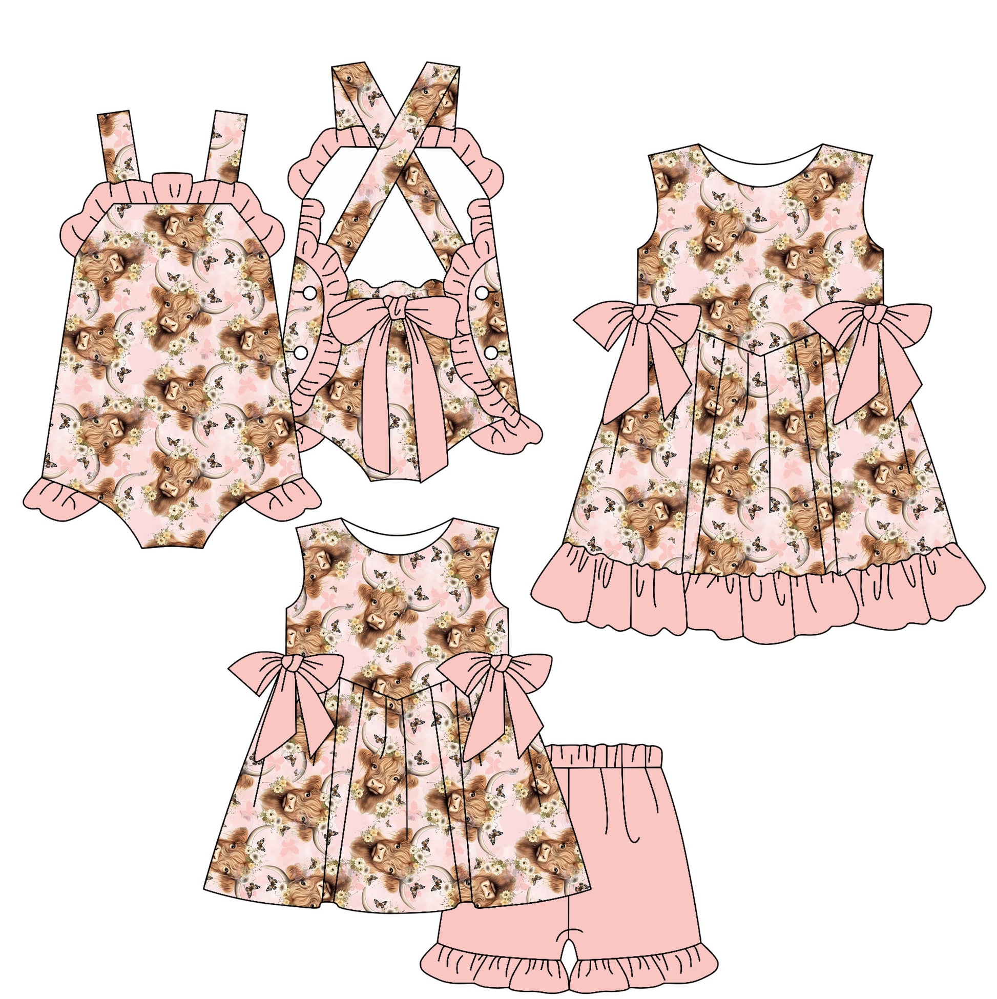 Baby Girl Western Cow Pink Bows Sibling Romper Dress Set ( Moq 5 Each Style ) 2.15