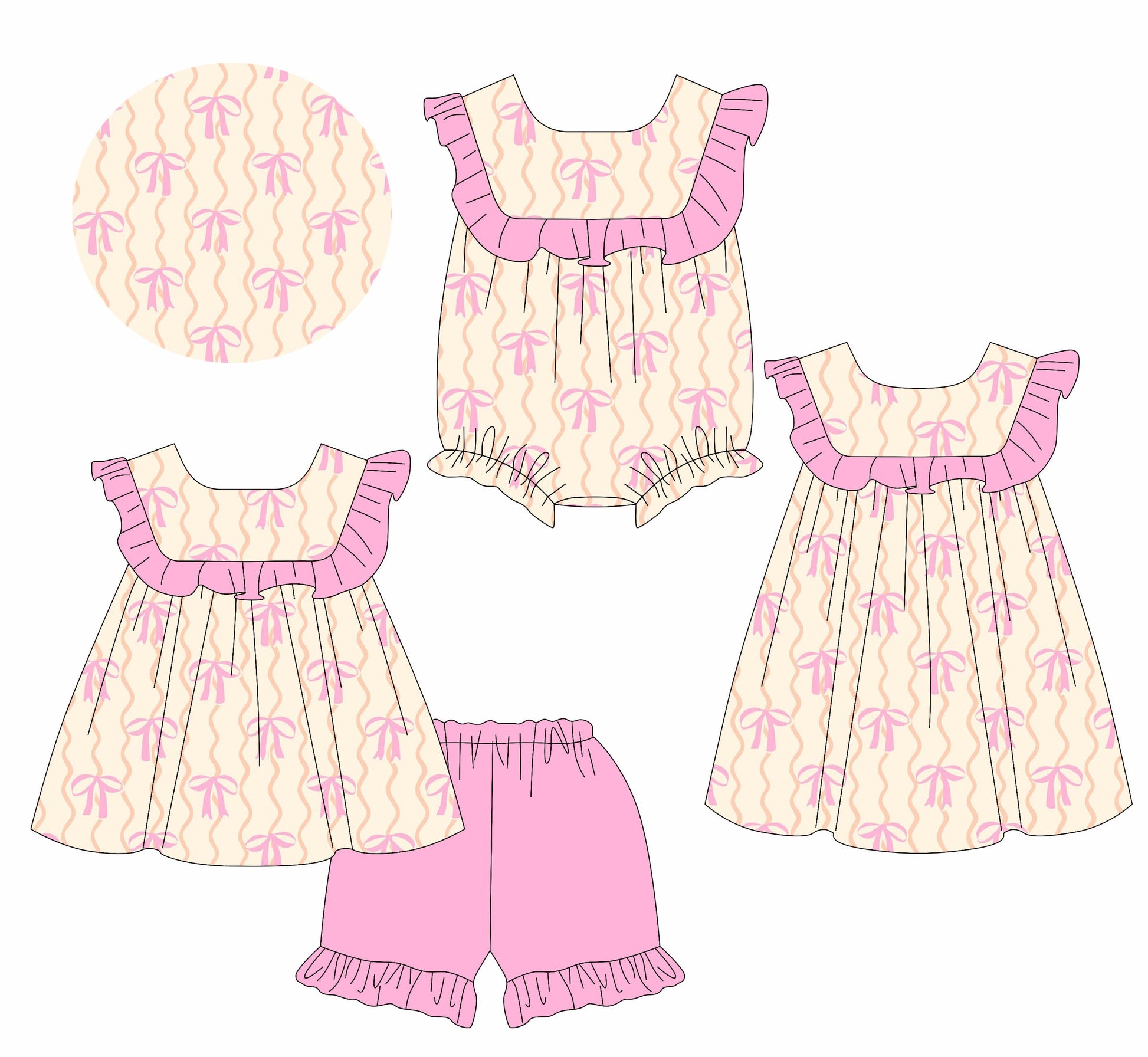 Baby Girl Bows Ruffle Sibling Romper Dress Set ( Moq 5 Each Style ) 2.15