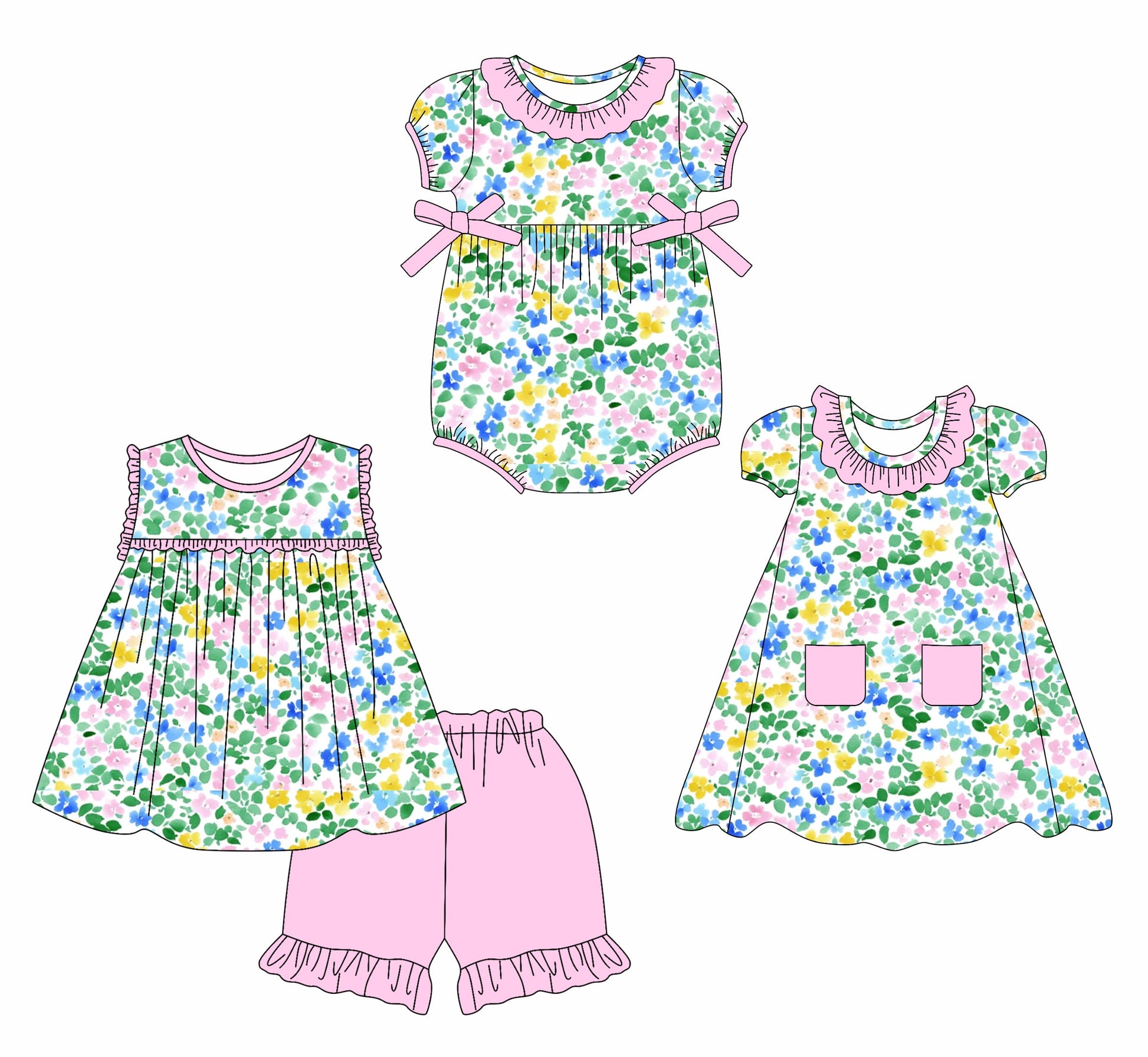 Baby Girl Flower Summer Sibling Romper Dress Set ( Moq 5 Each Style ) 2.15