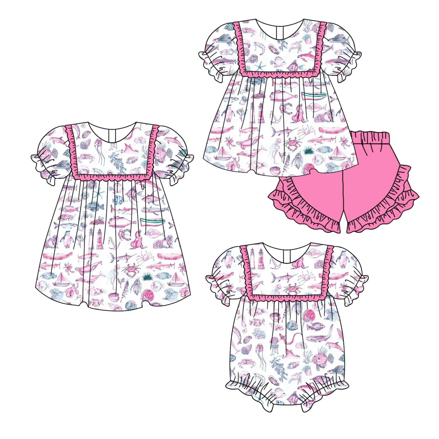 Baby Girl Short Sleeves Ocean Animals Sibling Romper Dress Set ( Moq 5 Each Style ) 2.17