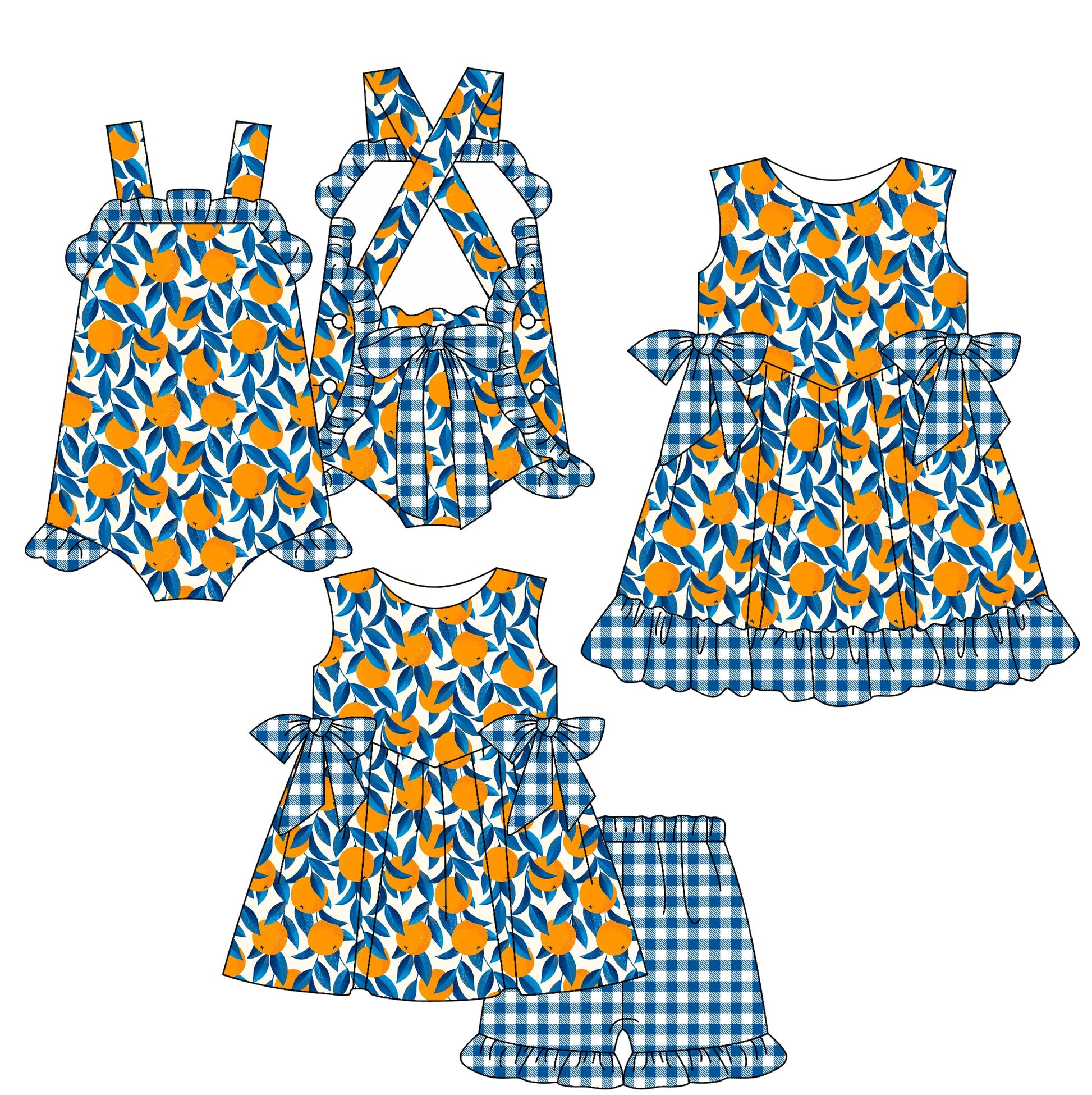 Baby Girl Sleeveless Orange Sibling Romper Dress Set ( Moq 5 Each Style ) 2.18