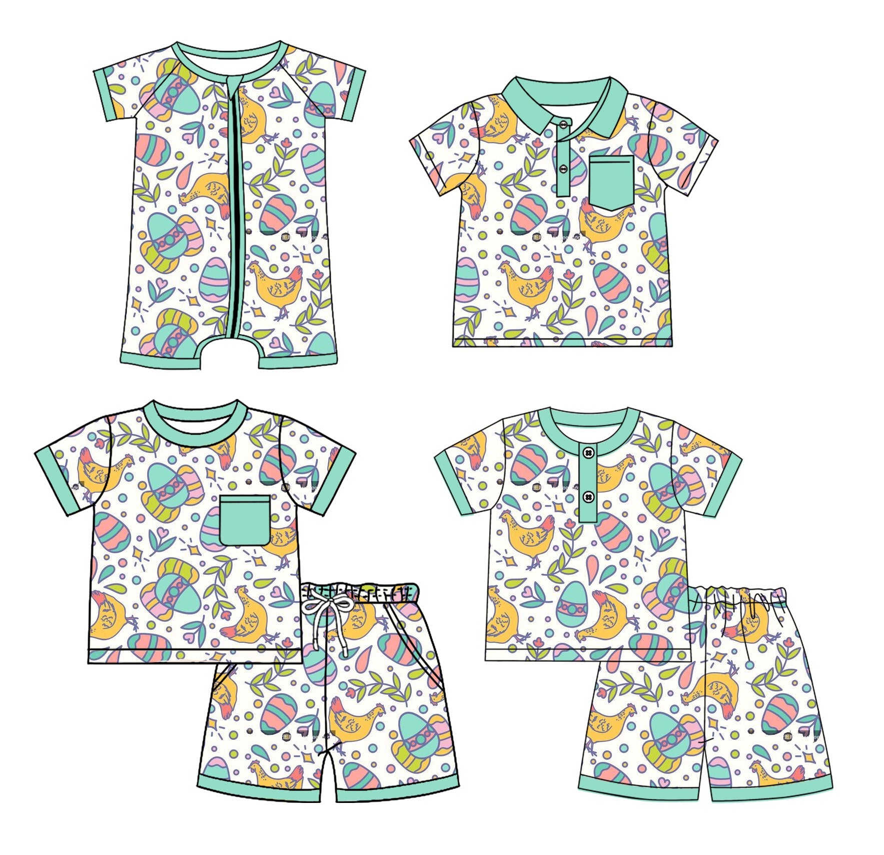 Baby Boy Easter Eggs Chicken Sibling Romper Shirt Set ( Moq 5 Each Style ) 2.20